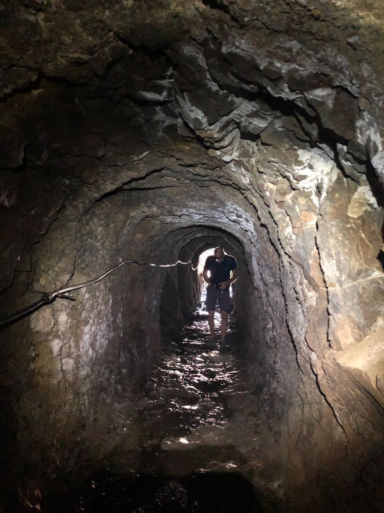 On our last day we still wanted to do another walk through a tunnel to the other side of a mountain. Who ever told us, mentioned that it was necessary to wear waterproof shoes or at least shoes and clothes witch can get dirty and to bring lights. That sounded interesting! Already on our way to the tunnel we met Andrea and Gerhard from “Monte”. They were on their way back to the boat from buying groceries. We told them our plan and they decided to join us. Said and done. We agreed to meet close to the tunnel as they were with the bikes and needed first to get their groceries to the boat. Us walking slowly and them hurrying up with their bikes we almost reached the meeting point at the same time.