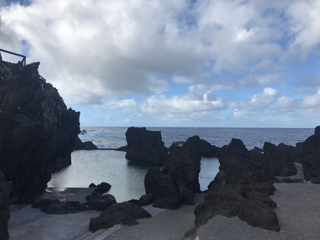 the pools and waves in Porto Moniz the lighthouse at the most western end; Ponto do Pargothe view to the east
