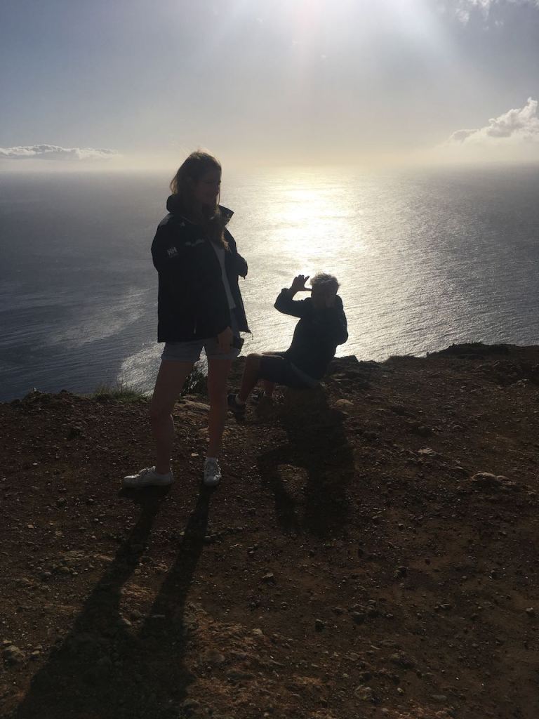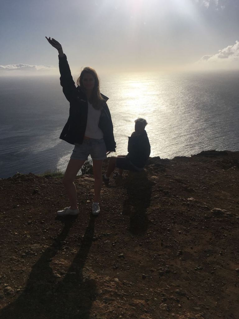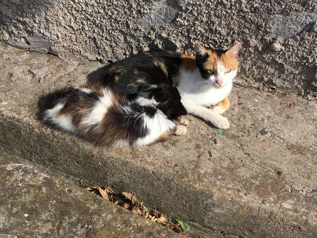 my posing crew in action at the western edge of Madeiraa kitten enjoying being petted from Jana