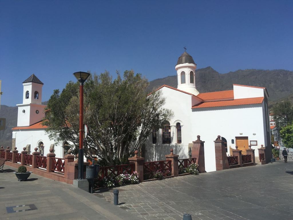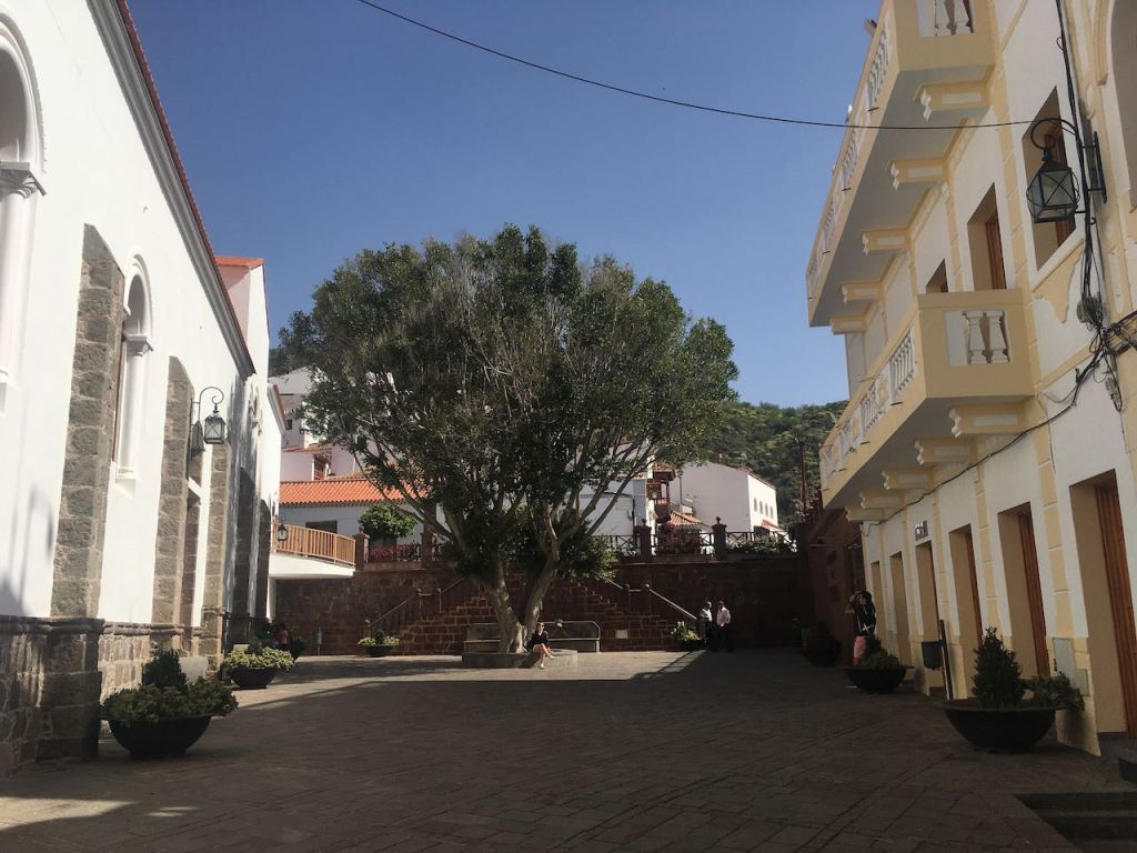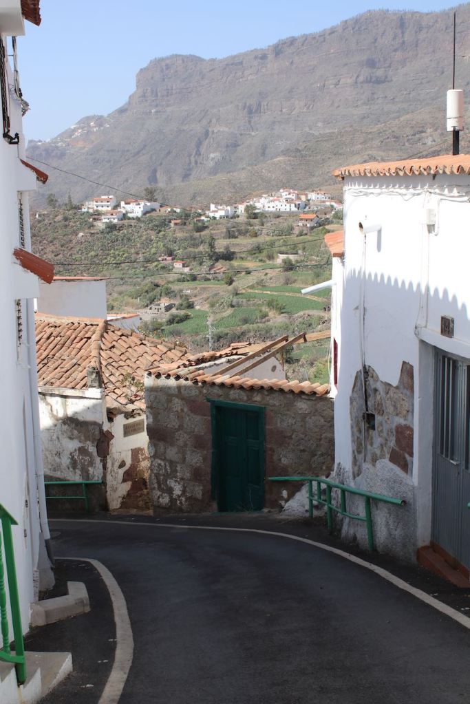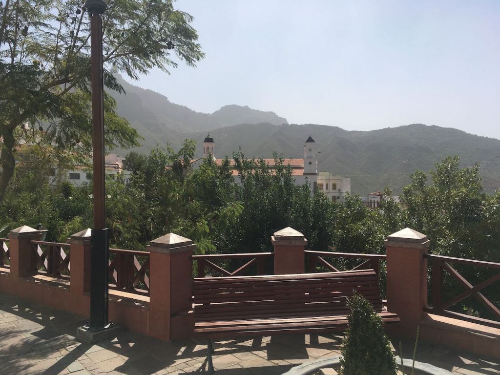 close to Santa Brigada on our way to Tejedajust arrived in Tejeda walking down to the villagesomewhere …in…the villagea park the view to the lower part of the townand the promenade church on the left and police on the righta typical steep roada banister😋 yammi dulcesshaped bougainvillatypical street view