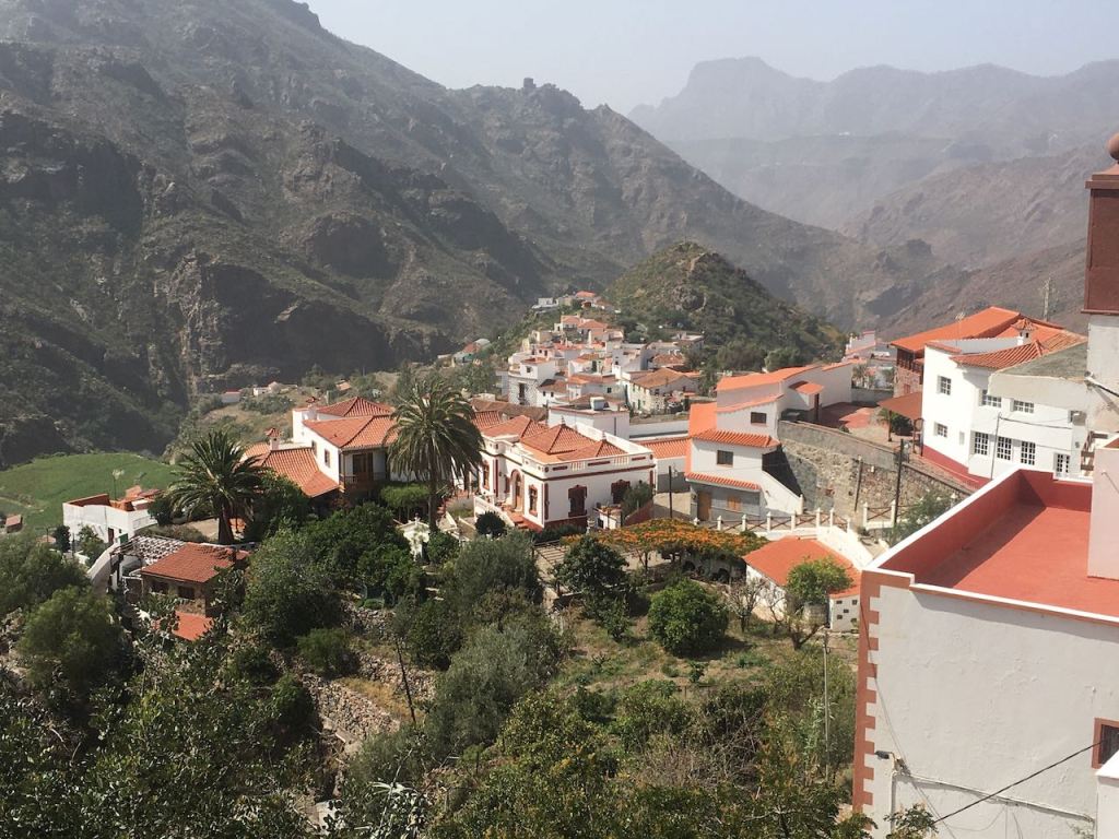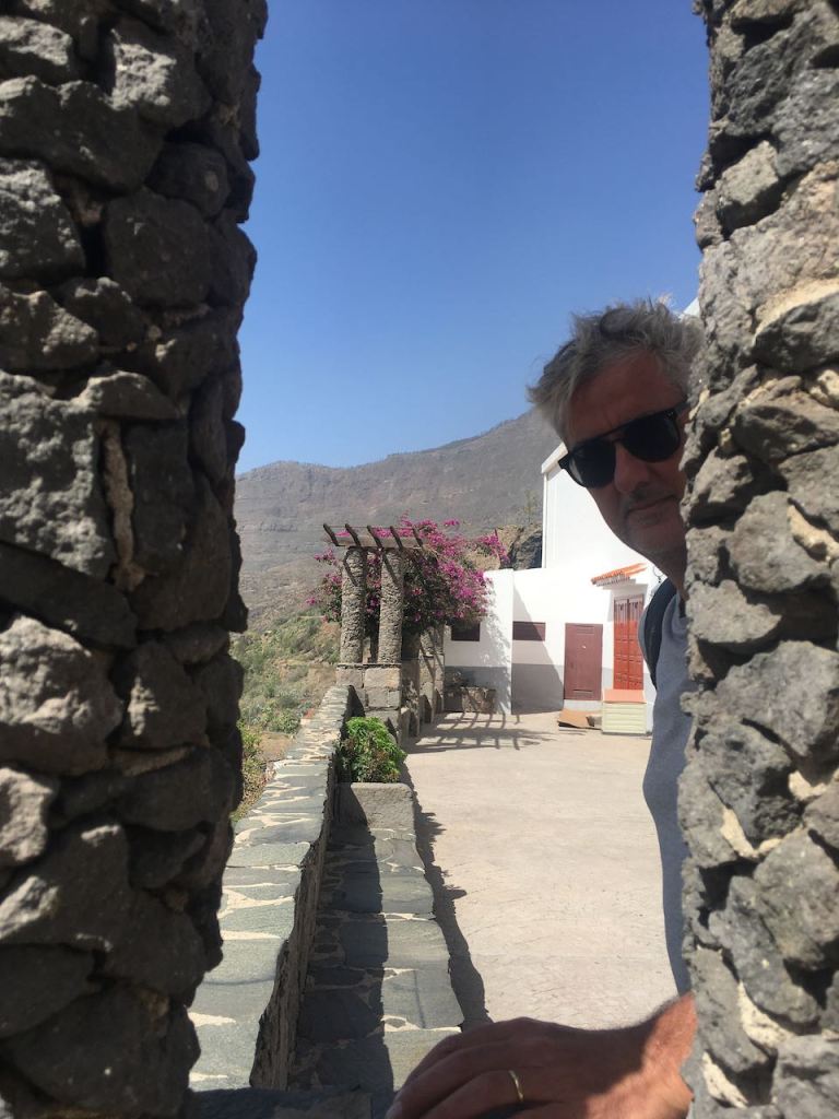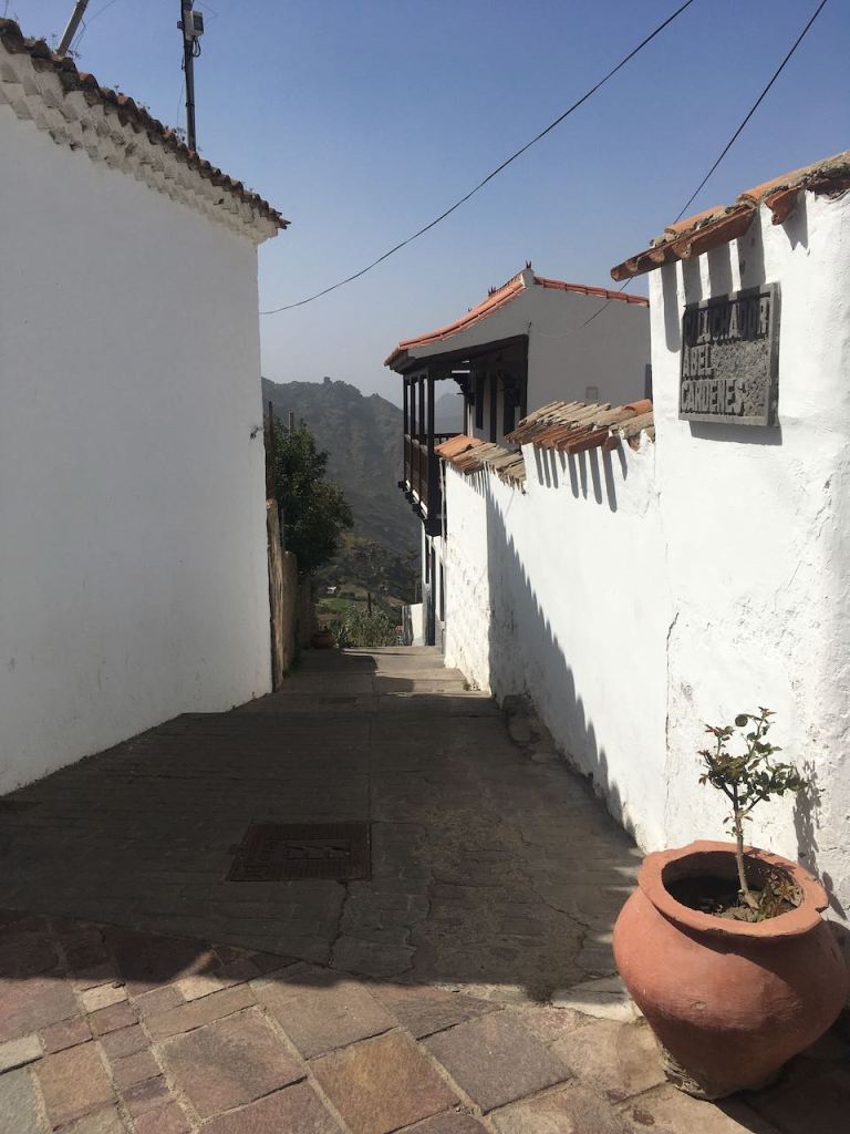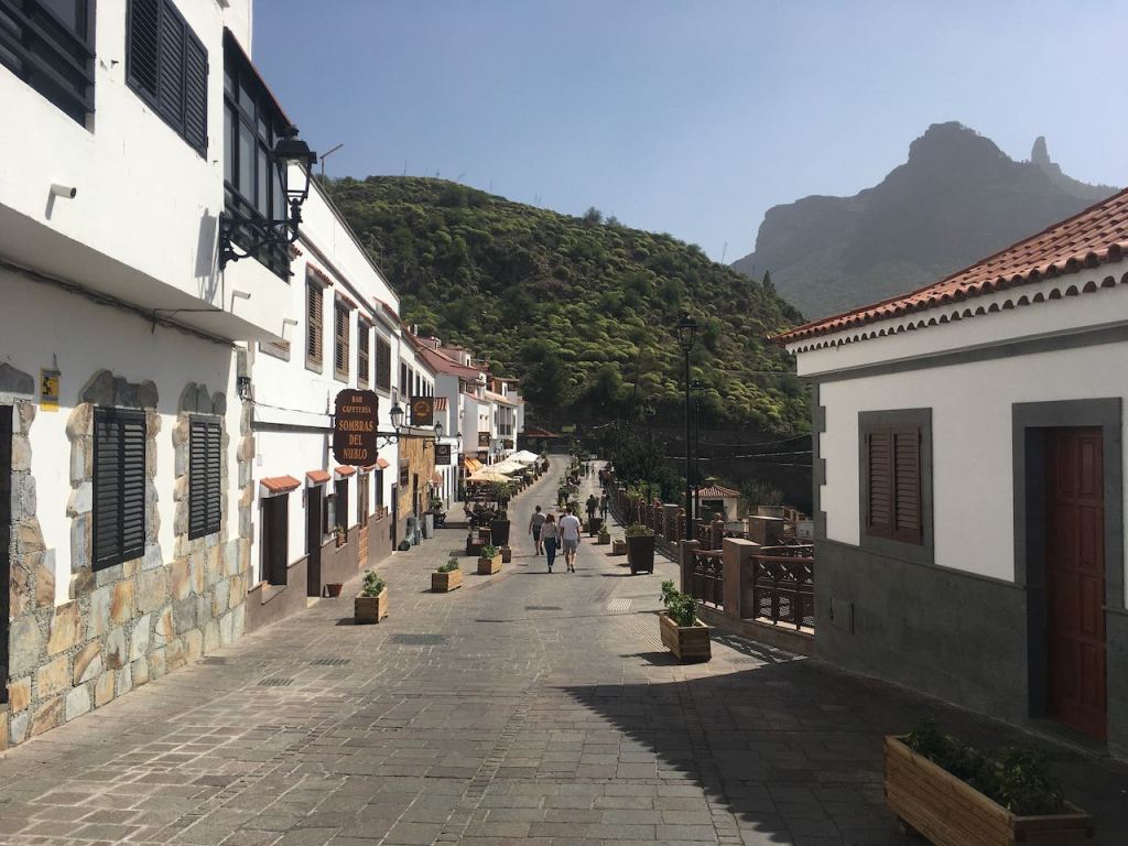 close to Santa Brigada on our way to Tejedajust arrived in Tejeda walking down to the villagesomewhere …in…the villagea park the view to the lower part of the townand the promenade church on the left and police on the righta typical steep roada banister😋 yammi dulcesshaped bougainvillatypical street view