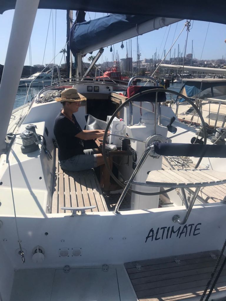 some impressions of the interior of the churchalmond tree still in bloomand here already the growing fruitbeautiful flowers and in the background Roque Nublo- I thinksome palm trees have just been to the “palmdresser” and get their leaves dry blowna late afternoon at a little industrial village…which was much nicer than expectedtrying to fix all the loose seams on our sprayhoodit was hard to get pics in the darkbut some turned out oka queen ,not a drag queenanother queenand a palmand the high heels of some of the drag queensafter the paradealong the promenade to reach the marinain the marinathe entrance of the marina in day light looking westa what? …at the funeral of the sardine