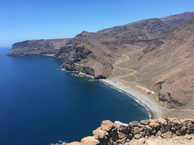 Apart from shopping and eating we had some nice walks at the surroundings of San Sebastian. We explored the upper town and walked a circle trail to the lighthouse, we went to the beaches and had some swims and I even dared to hike up the rock next to Playa de San Sebastian with El Capitano to head almost to the next beach named “Playa de la Guancha”. We did not go down to the beach but we had a nice view down on it. It was a rocky trail with very few flora or fauna but with amazing views. Though the cliffs are very barren in the south of the island, the rock formations are always stunning. We enjoyed our first walk very much and I was very proud I did it!