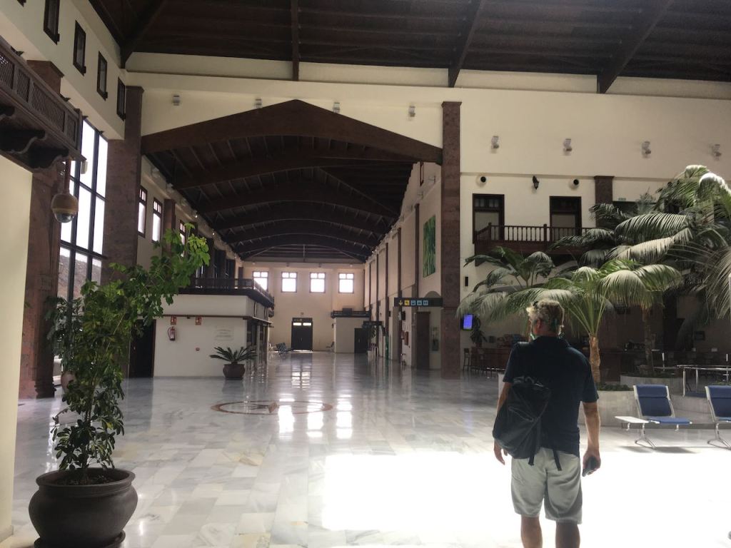 A beautiful pretty new little airport in the south of La Gomera in the middle of nowhere. It looked deserted and we knew there were only very few planes arriving (we learned later there are only 3 flights a day) and leaving but we were still hopeful. The only security guide looked a bit surprised to see us and his look made us a little worried, but then the relief- the Cicar (our chosen rental car provider) office was alight! Yes! Ha! Yes,yes,yes of course there was nobody 😉. Norbert called the displayed number but only got a very unfriendly-not-listening-to-our-problem lady on the phone. She just hang up. Thank you! After more unsatisfying calls with this lady and some calls to the hotline we figured out that the lady earlier had booked us a car in La Palma (another island) hahahahaha what the f…!