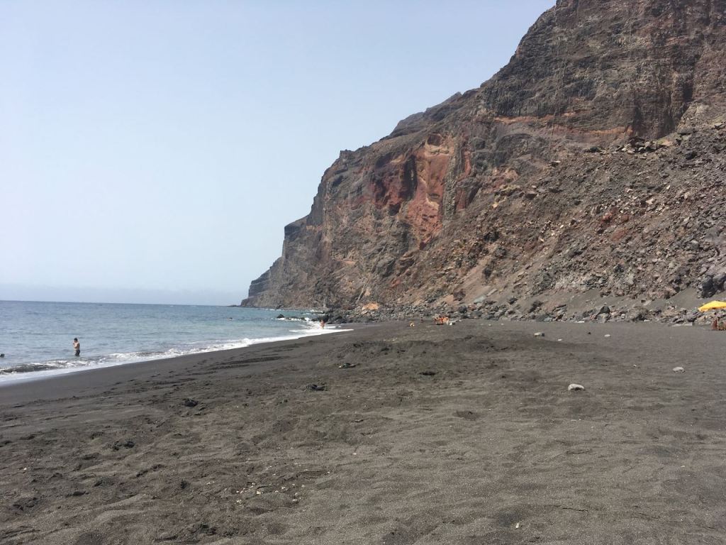 Nicely tired from our walk we were happy to sit in the car and enjoyed our ride through stunning ravines, passing tiny villages to finally get to Valle Gran Rey on the west side of the island. As it was very hot we stopped at a small beach Playa Ingles in the south of the valley, burned our feet on the super hot black sanded beach, had a swim and a little nap. After our beach siesta we headed to the other end of the valley to see the mini harbour and the anchorage were we might go some day. All cute and tranquil like the whole island.