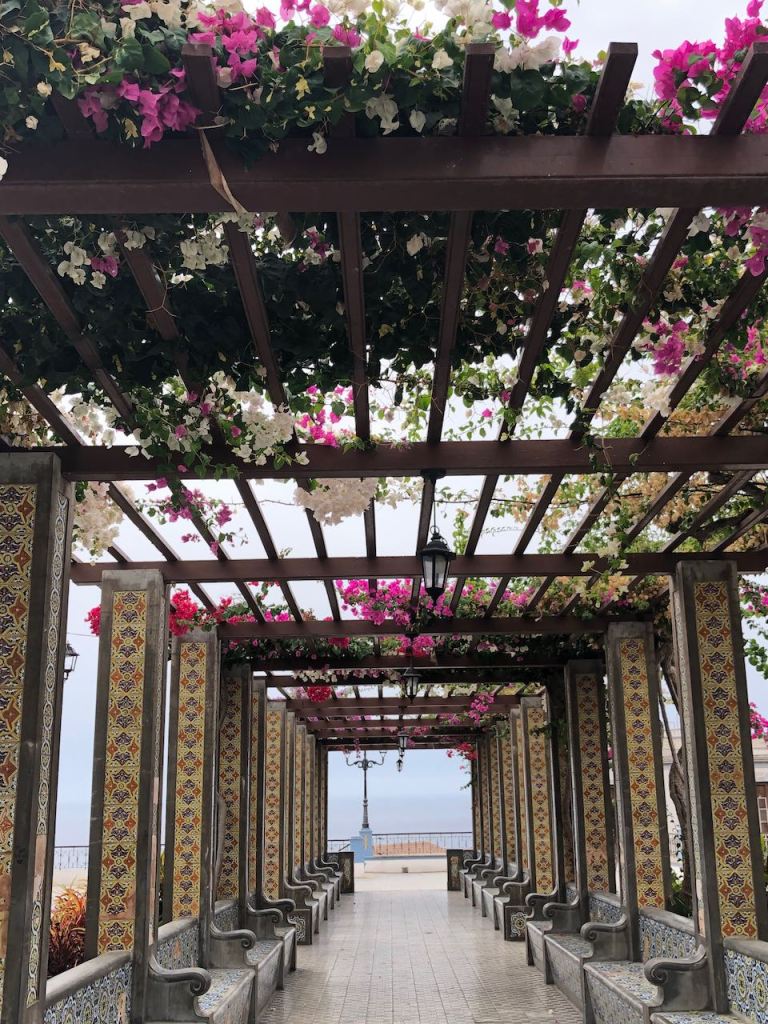 La Palma is beautiful! It absolutely deserves the name “Isla Bonita”. Even in the rougher areas of the island, like here in Tazacorte, the little villages present themselves always in a pretty way. The northern part of La Palma is blessed with beautiful fauna, dense jungle-like forest and the south part presents itself harsh with a volcanic landscape, similar to the other islands. Colourful painted houses are often decorated with pretty flower pots. Silk trees, oleander, bougainvillea, geranium and other plants are beautifying places and streets. Often the little central places are lovingly tiled with colourful mosaic in addition to the plants. So pretty!