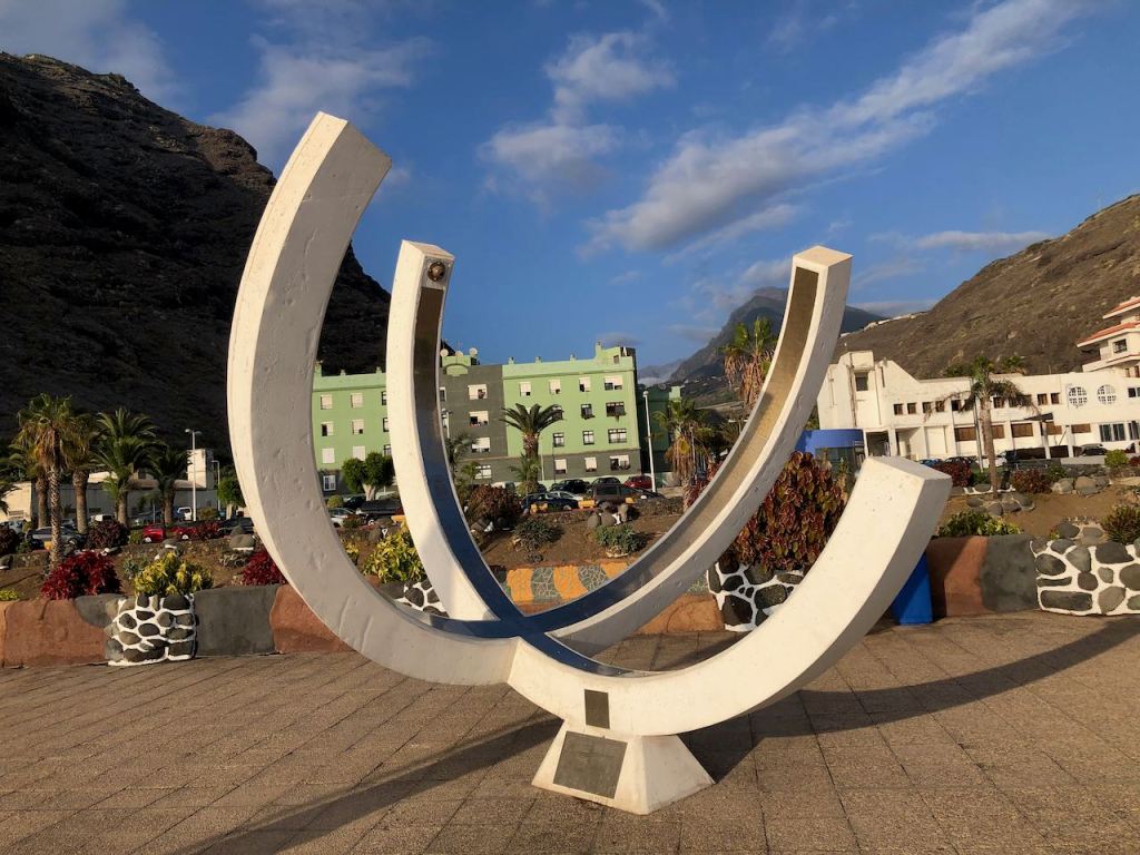 at “Mirador del Time” ; on the right the marina and in the middle in the background the village of Tazacorte
