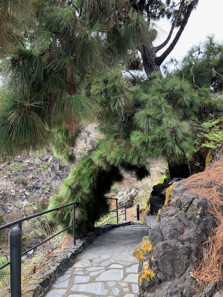 The waterfall is located in the north-eastern mountainous landscape of the Island, the Parque Natural de Las Nieves which was declared Biosphere Reserve by the UNESCO back in 1983. The books say “it displays its greatest beauty in Barranco del Agua. Its watercourse has been moulded by the unceasing flowing of waters through thousands of years: erosion has given shape to a deep ravine where laurislva, redoubt of the Tertiary Era, grows.”