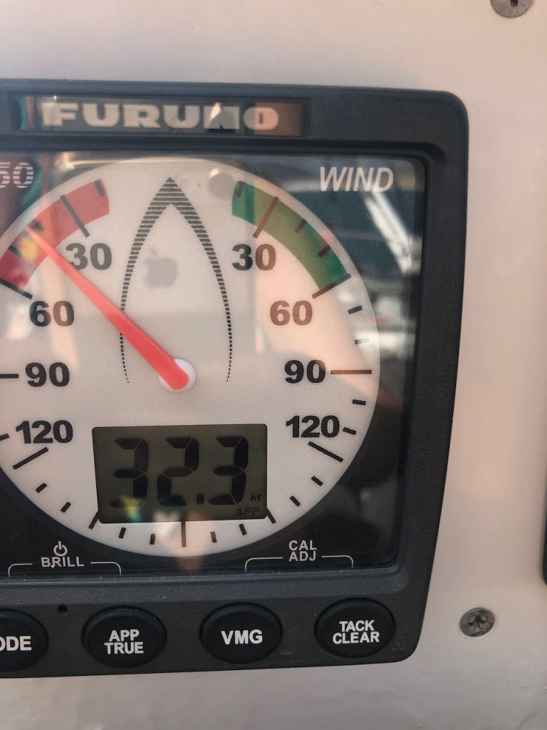 The low pressure in the cover picture was the reason we left our favourite anchorage. A couple of days later it caused the catabatic winds falling down the clips of Lanzarote. Those winds produced the uncomfortable wind waves in the anchorage.