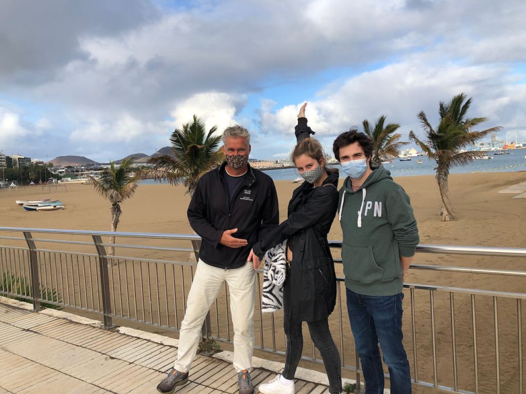 The day that Benoit went back to Paris, we solved the mystery about the weather: When we left to the airport with Benoit in the morning, the sky once again was cloudy. We dropped him off and on our way back we could already see some first spots of blue sky between the clouds. Only 2 hours later we were back at the airport to pick up Luis who, after an also not so easy process including waiting 4h to do a Covid test and forgetting his wallet at security, made it to Las Palmas safely. We walked out of the airport and guess what? It was SUNNY! We quickly understood that it was just Benoit who is haunted by the weather gods, doomed to live with nothing but clouds and rain causing us those 2 weeks of bad weather before.Â