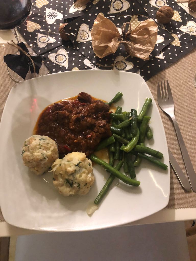 The days before Christmas Eve were filled mostly with heated discussions about what to eat during our time there. Raclette, Fondue and co. werenât possible due to lack of the necessary equipment, much loved Parmesan GrieĂ by Tim Melzer also had to be abandoned as we were missing a suitable pan for the oven. Finally we settled on a not so Christmassy, yet incredibly German winter dish: “Gulasch mit Semmelknödel”! On the 24th we made sure to spend some time at the beach and made plenty of pictures of us in shorts and T-Shirt to be able to make as many people as possible jealous. Coming home from a day at the beach and eating Gulasch however was a little unusual, I have to admit.Â