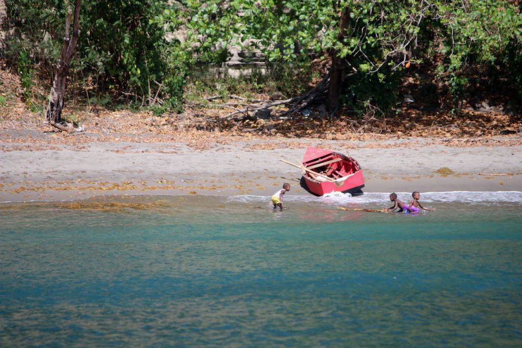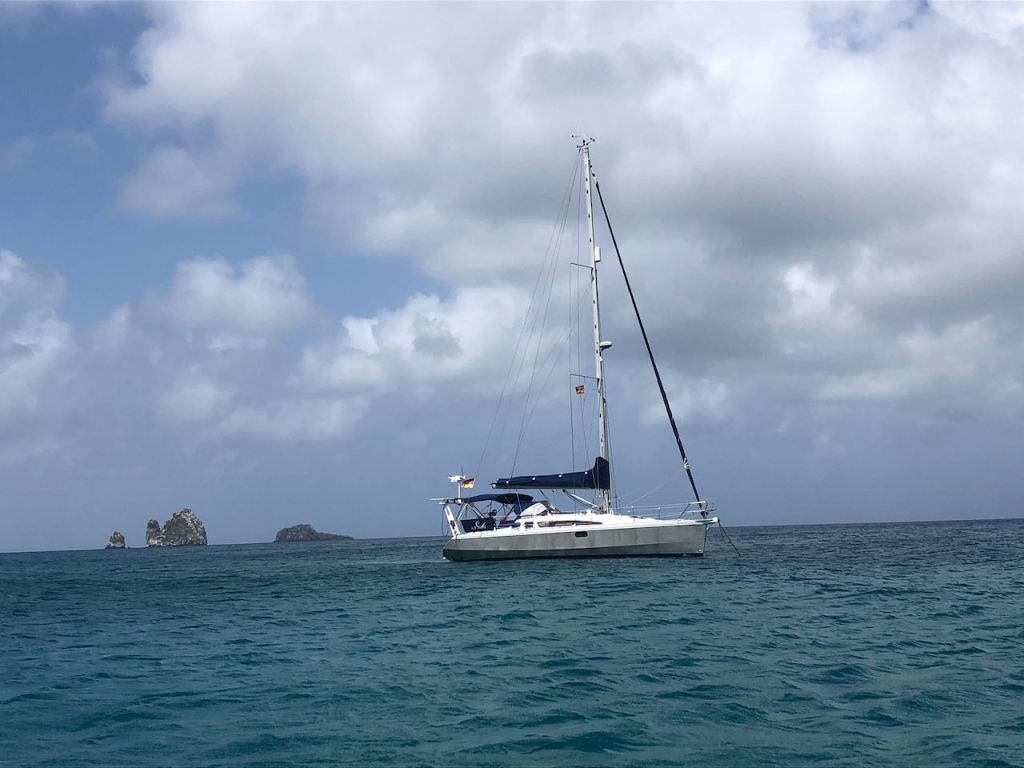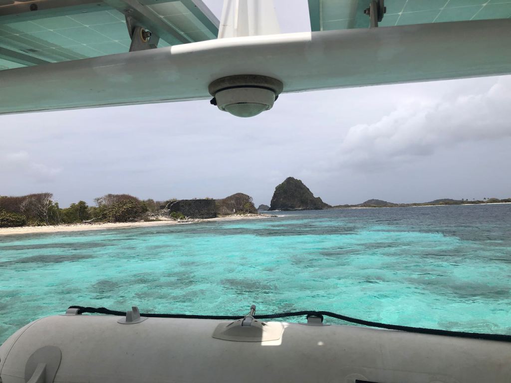 The three boats all left Halifax bay Easter Monday to sail to Ronde island. Malok stayed only one night at Ronde island and then went on directly to Tyrell bay/ Carriacou. After two nights Carina also headed to Tyrell bay while we decided to try the shallow anchorage at Saline island. Just a few miles east of the very south end of Carriacou.