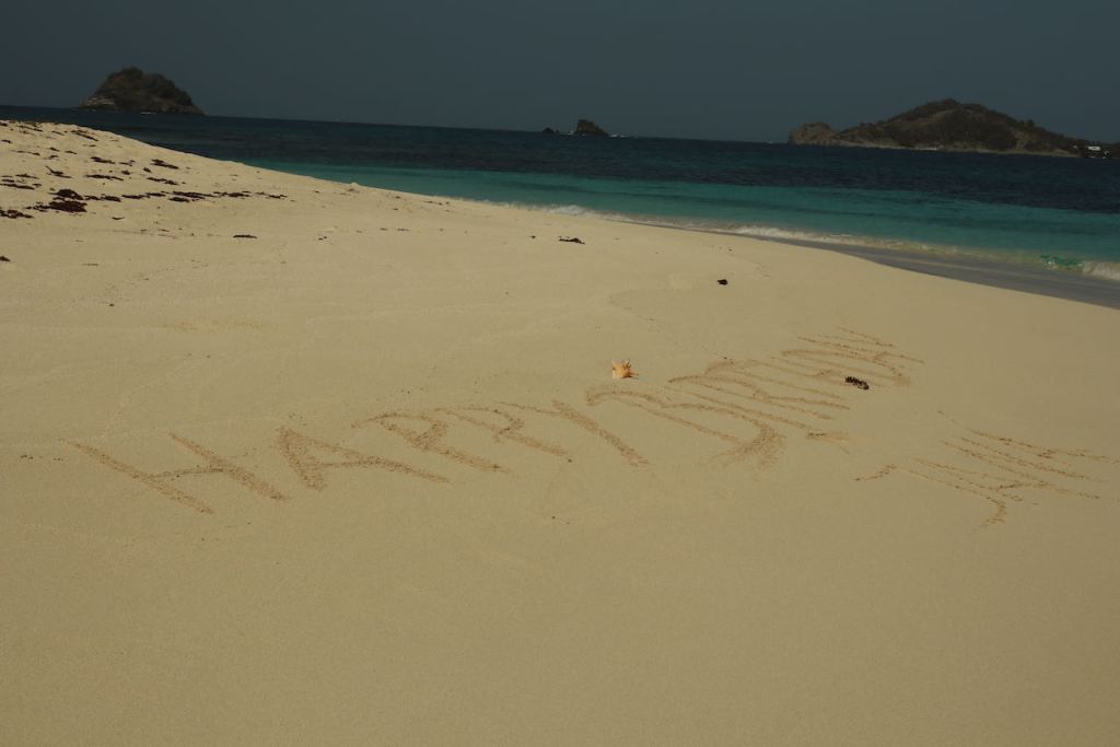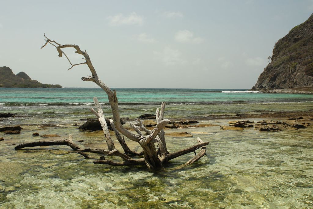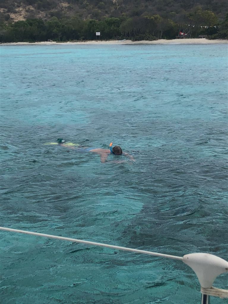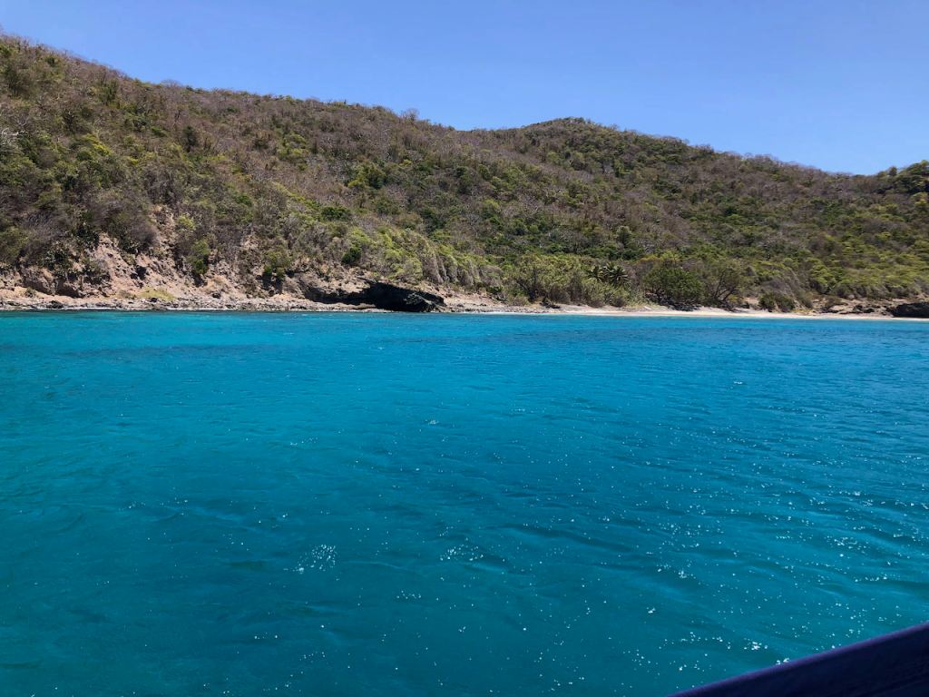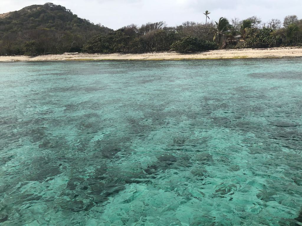 Saline Island, crystal clear water in a small and very shallow anchorage