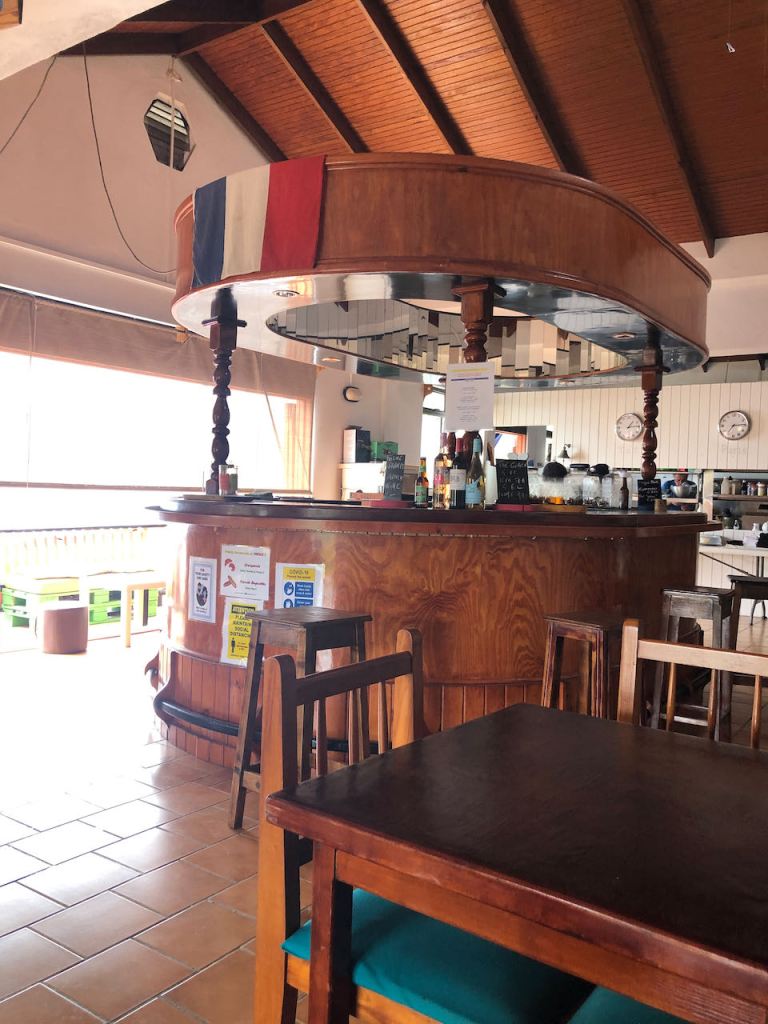 the little islet in the bay, there is a bar/restaurant, but we saw it only once open; it looked as if it was booked for a party