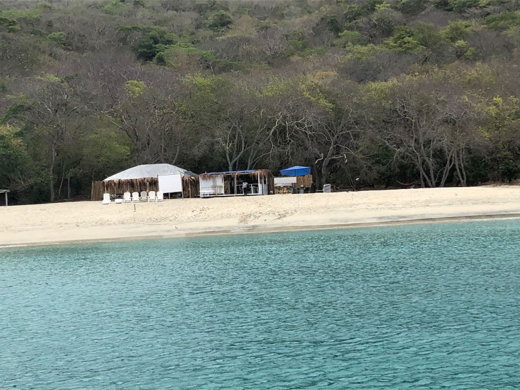 Even more impressive as the beach is that the bay is only reachable either through a quite steep path from uphill or by boat. The guys have to carry everything down to the beach or they use a small boat for their deliveries. Both ways not easy!