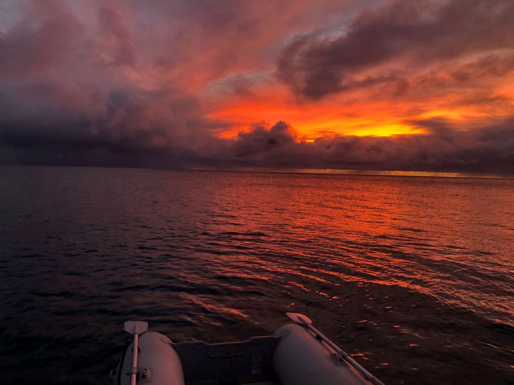 the delivery boat and Altimate at sunset