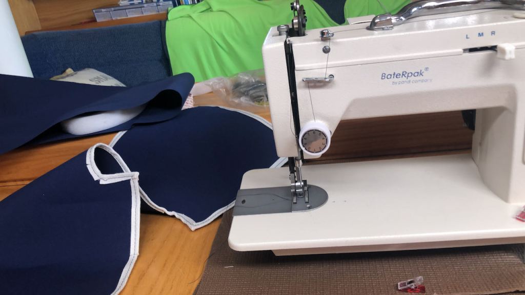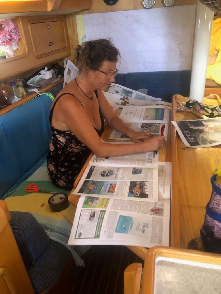 my handicraft morning, taping the newspaper sheets together for making the dinghy pattern
