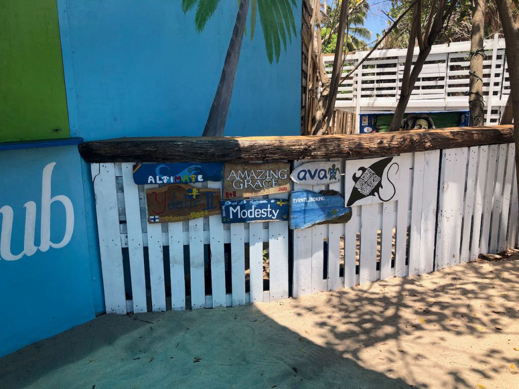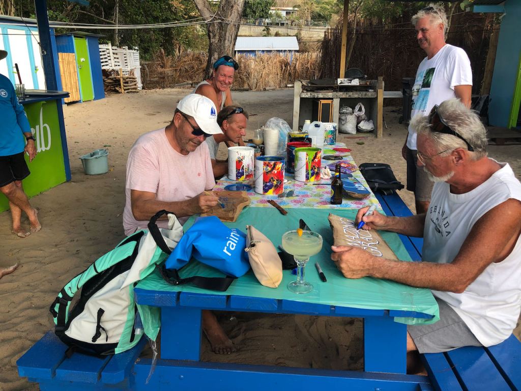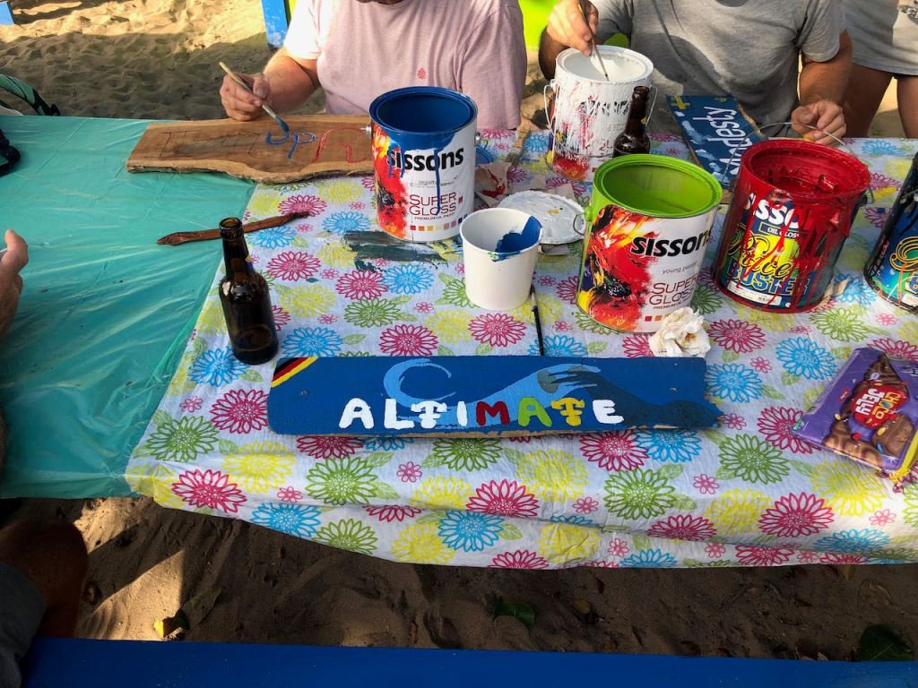 after weeks we could finish our sign at the “sip and paint” day at Paradise Beach bar; it got a bit dirty…