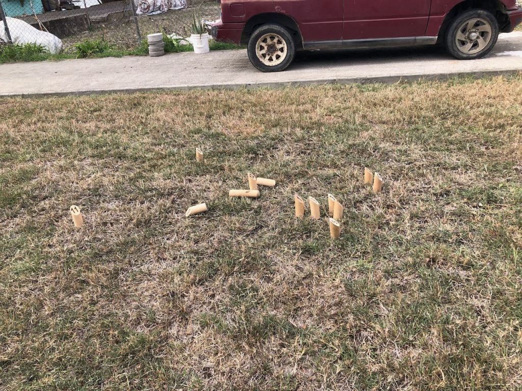 I did not take much pics, so it’s a bit difficult to imagine and explain;, but I can assure it’s a fun throwing game suitable for players of all ages and numbers. Our hosts expected more players to come but with only the 6 of us we still had much fun playing it.