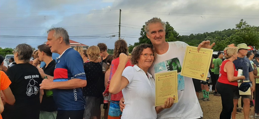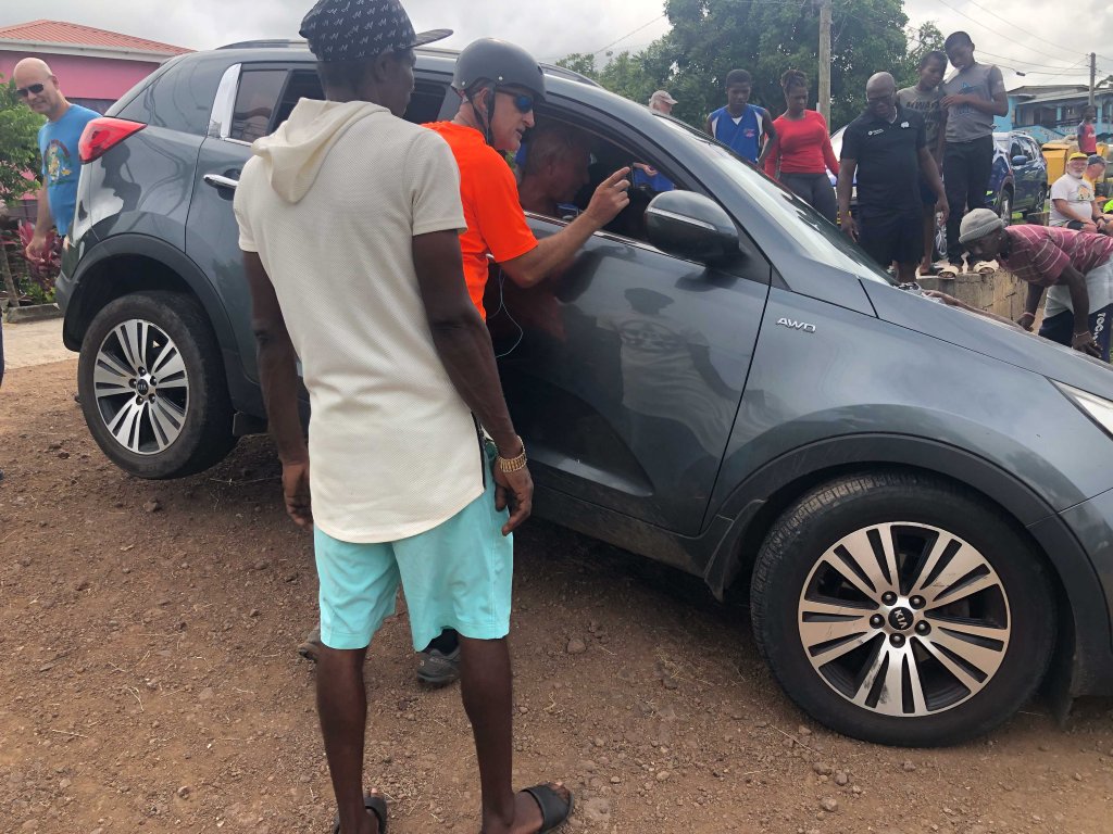 when we arrived at the starting point of the Hash, Johannes got stuck with the car in a ditch, everybody was helping to get the car out again