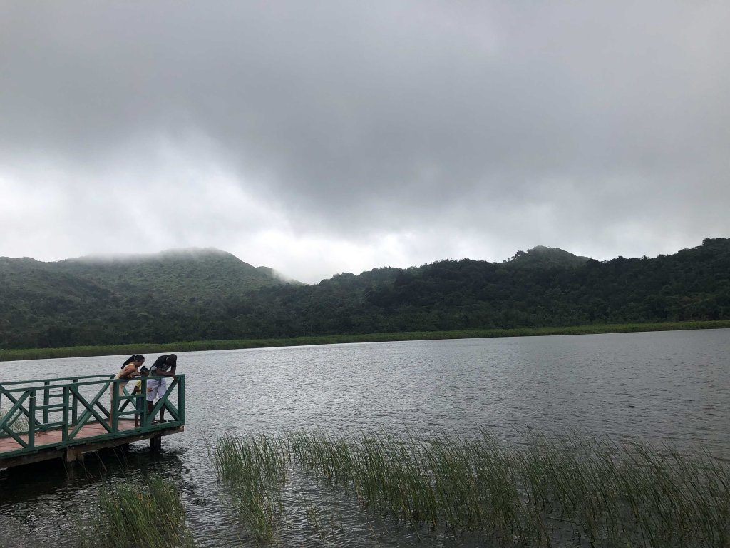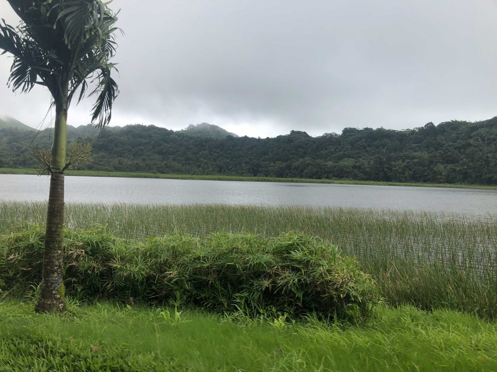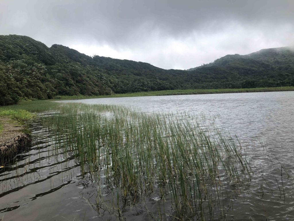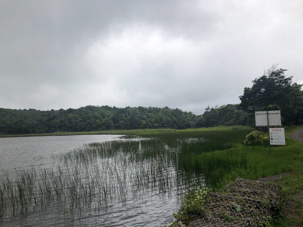 it is a crater lake in an extinct volcano responsable for the formation of the island, says wikipedia