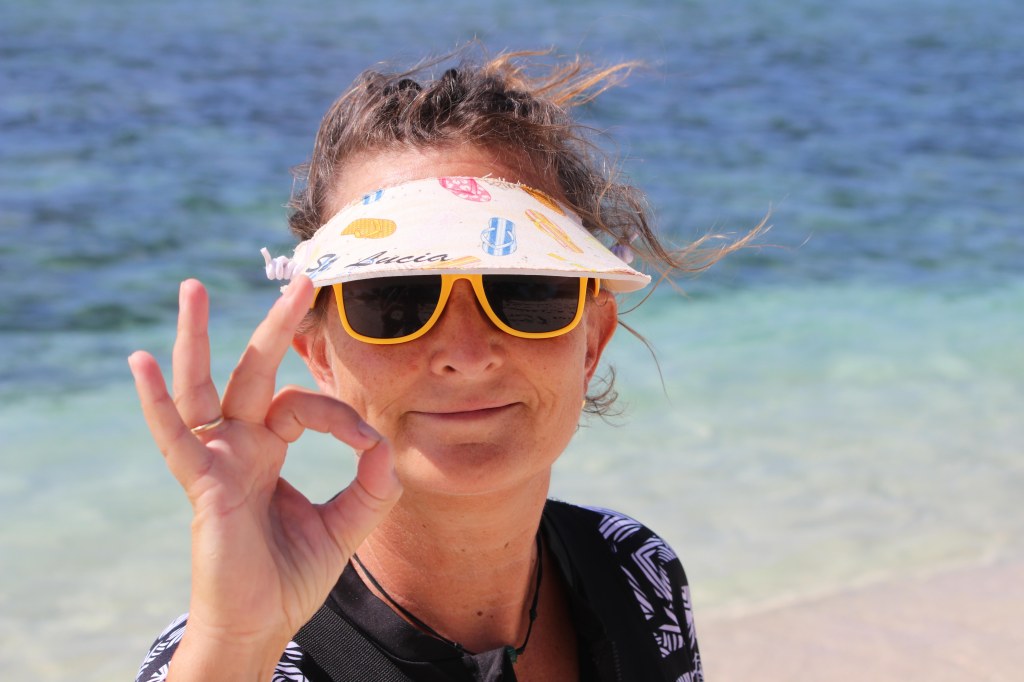 Sandy Island is an uninhabited cay lying off the west coast of Carriacou. It is a tiny stretch of land surrounded by clear blue waters and coral reefs, where we did some incredible diving 🙂 .Yeah! It has one of the loveliest beaches in the region, excellent snorkelling and a picture-perfect Carribean look: white sand, turquoise water and swaying palm trees.