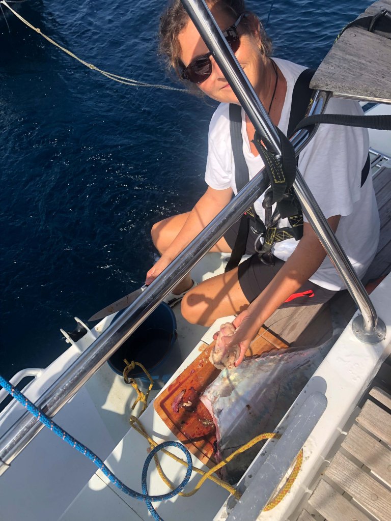 while under way I was cleaning and filleting the beast, it was enough for three days, yammmmiiiiii