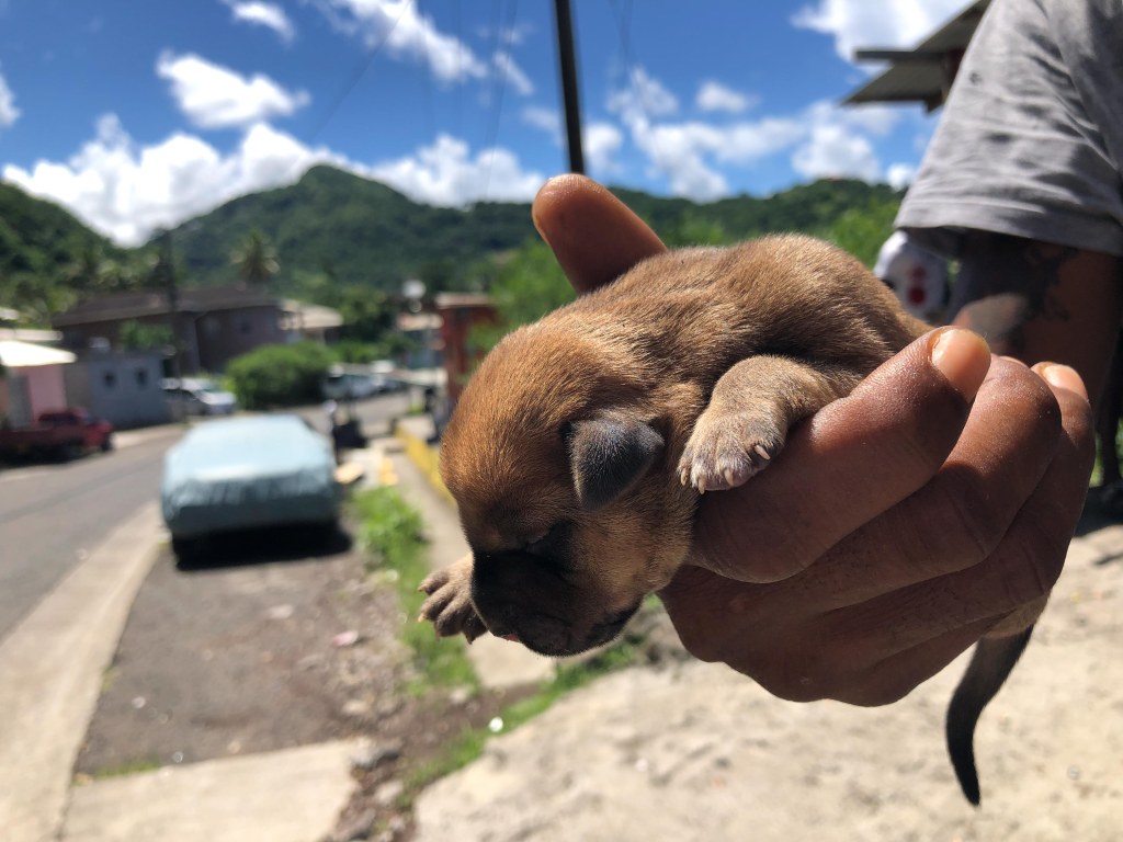 Before we set sails, we went ashore for a last garbage walk and to buy eventually some fresh vegetables in the little village Brizan, half a mile south of our anchorage in Halifax. Well, we got rid off the garbage and managed to buy some garlic. At least we got half of our minimum grocery list. Not bad at all, right? While trying to find some veggies we passed by some locals who just found a very young puppy-dog. They said it just rolled down the hill right on the street. They picked it up as there was no sight of the mother. A cute puppy, but no! we didn´t even think of taking it with us. Considering the huge amount of street dogs who are usually looking very poorly we can only hope that this little fellow will find somebody who is willing to look after him.