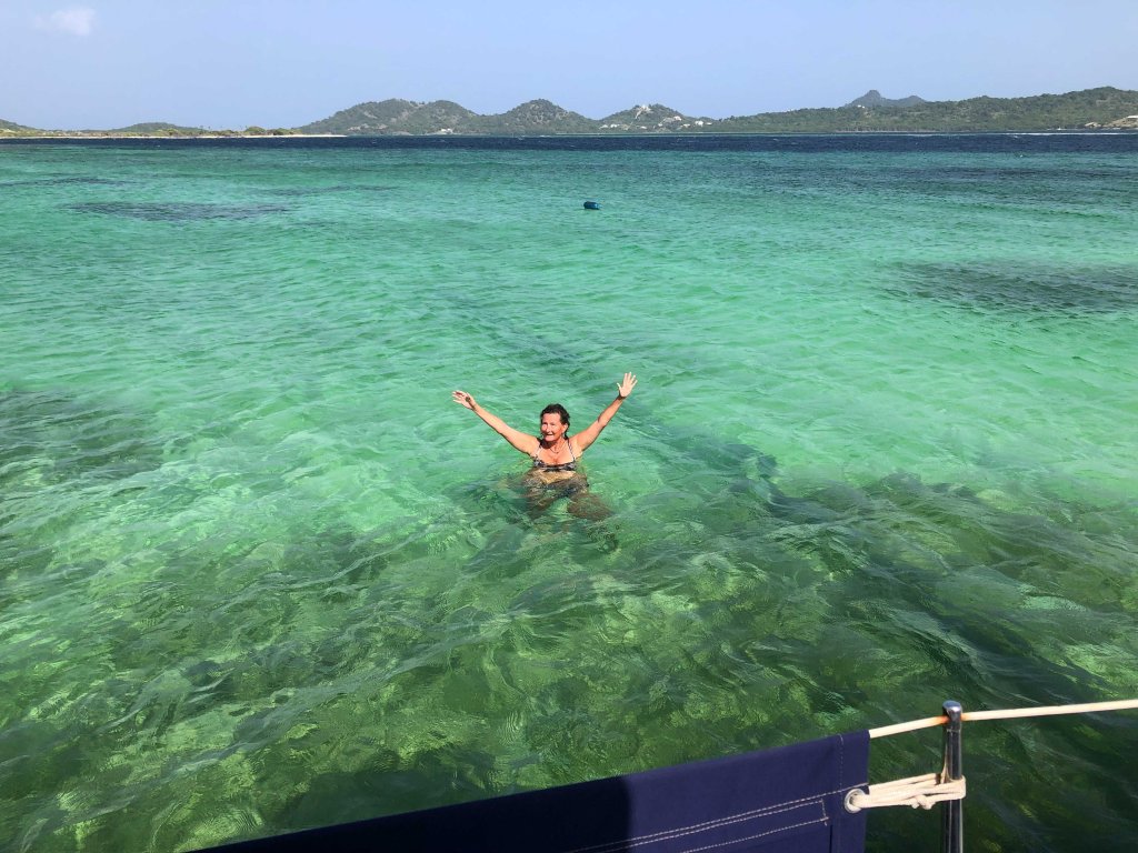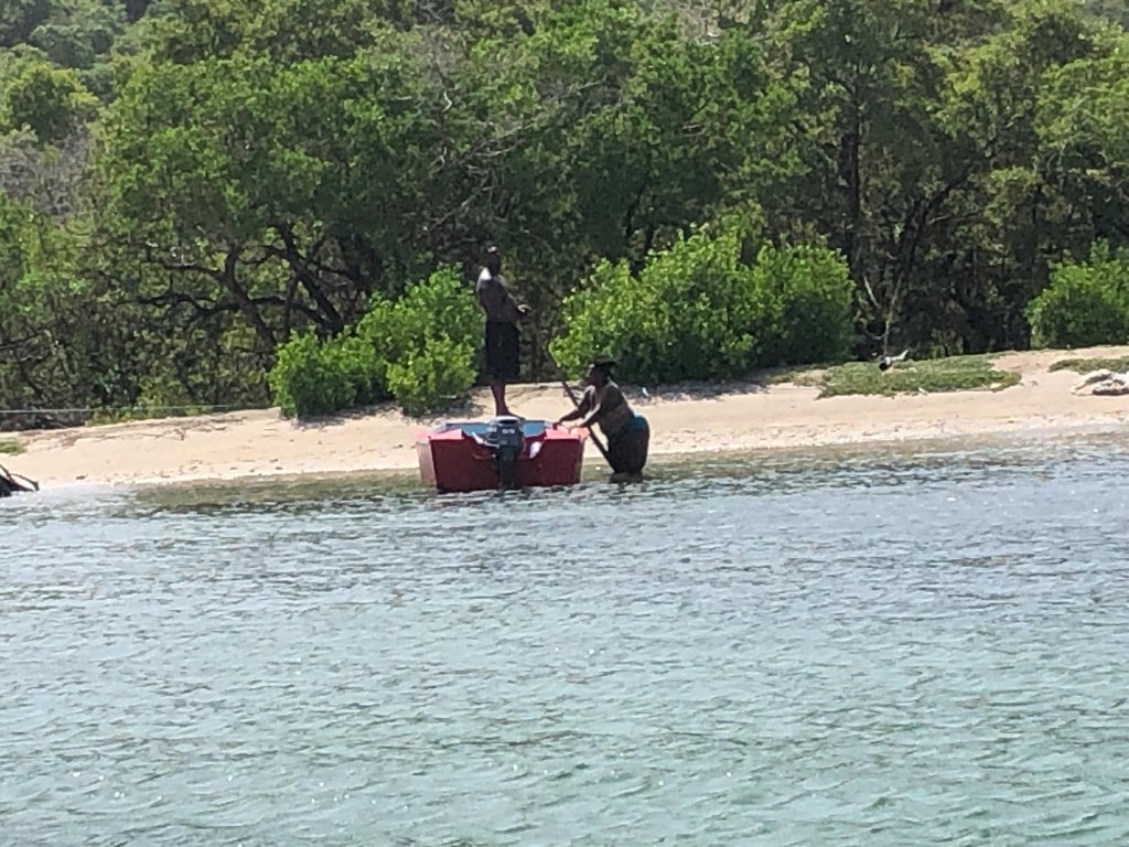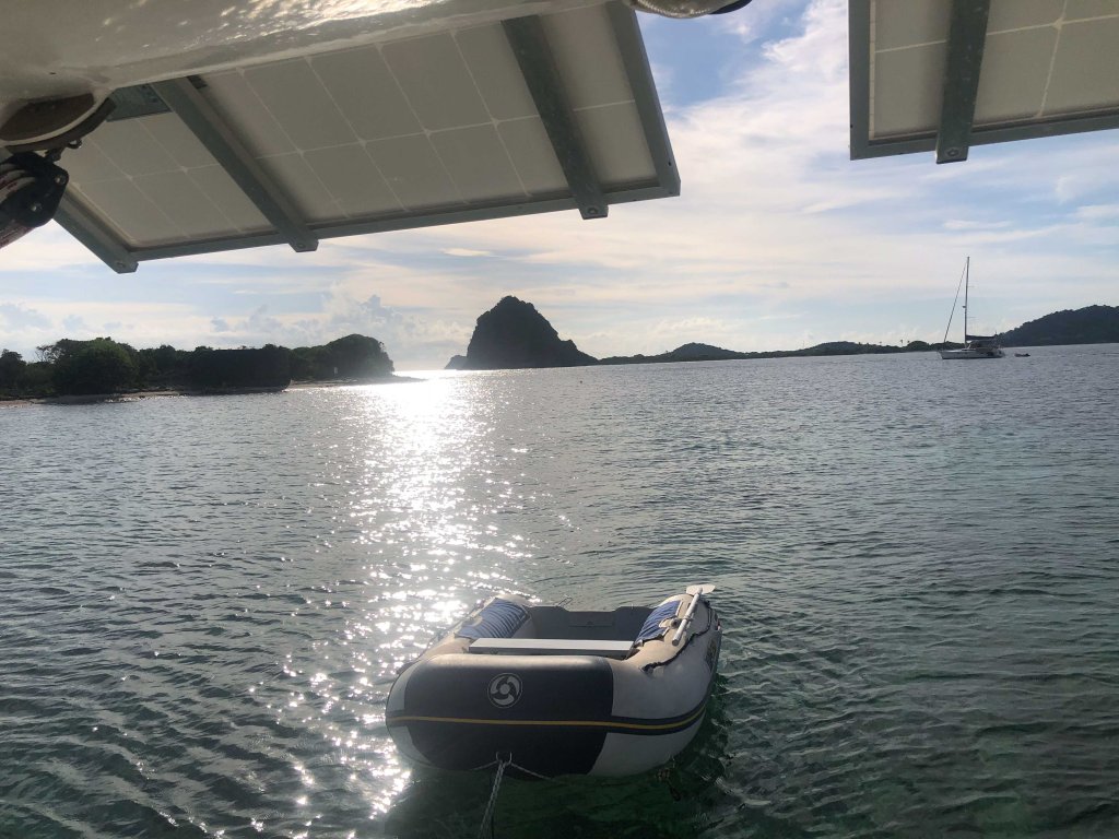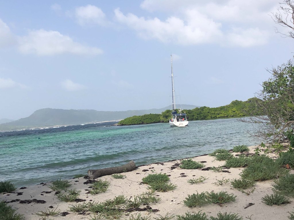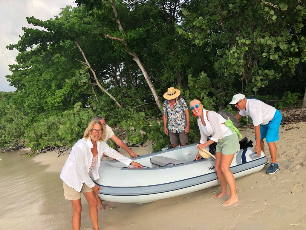 our first day of socializing at Paradise Beach, we were helping Irma and Kevin getting their new heavy rib back in the water
