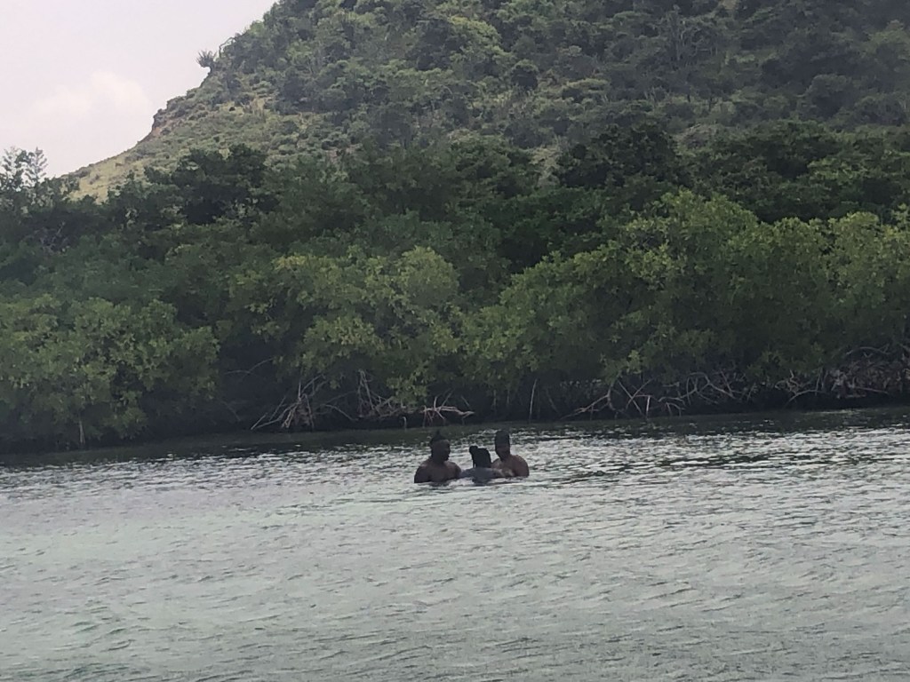 Ron and family had visitors over from Carriacou for lunch and a swim-walk one day