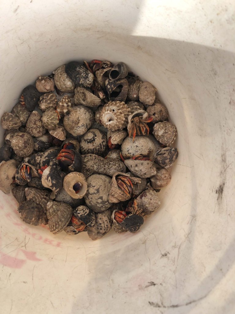 one huge solar crab, it was too big to properly fit in our bucket; I was scared he could escape from there so we didn’t take him
