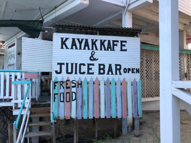 just coming out of Alexis, the grocery store; the booth close to the water sells groceries as well