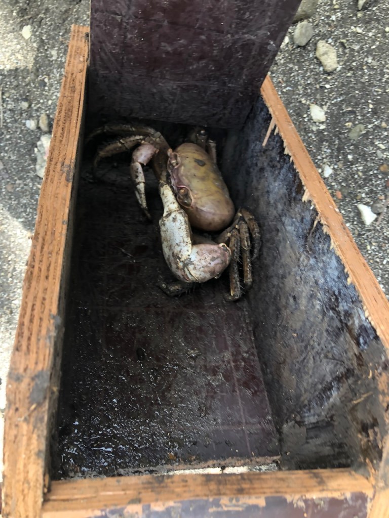 Just like this the nine days with the two of them were almost gone. After all our different wildlife experiences in the waters of Anse d ‘Arlet we headed up a little further north just around the corner to Anse à l’Àne. The ride up there was veeery windy – opposite of what was forecasted, of course! I got soaking wet because a couple of squalls liked to hit us and somebody had to stir as we had too much sail up and our autopilot was not yet fixed. Still it was a fun sail and we actually were pretty fast😁. Anse à l’Àne was also new to us so it was nice for a change to discover the area with the kids. Here we finally found out about the crab traps we saw suddenly everywhere close to the beach. A local was just harvesting(?) a trap when we passed by. He explained that the crabs were only allowed to catch in March and April (if I recall correctly). It seemed to be a tradition to eat those beauties at and around easter time. I wouldn’t mind trying them served with a delicious gravy or whatever but I wouldn’t be so keen on preparing them.