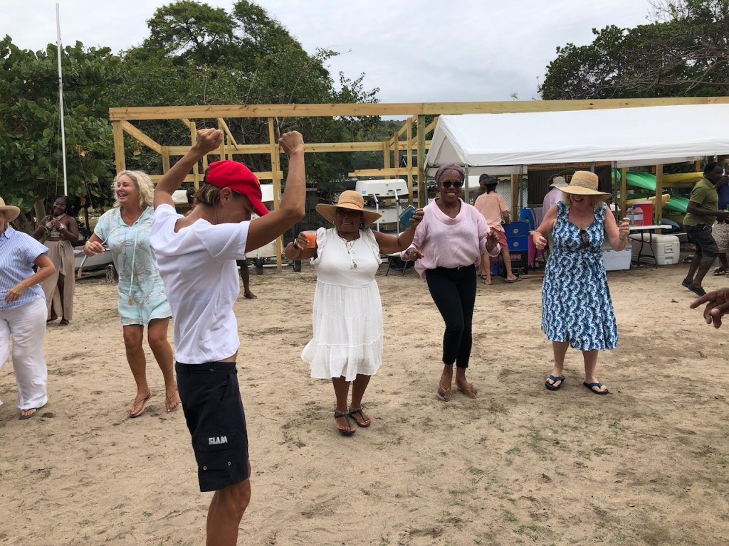 That evening Wilson introduced us to so many people that in the end we had the impression we knew half of the population of Nevis. Maybe not quite but definitely a lot! Nevis is a very small island with only 93 km2, approximately 12000 Nevisians and it seemed with a pretty big retired expat community. However we had a lot of fun and felt so special. It was such a difference to talk to non sailors. With sailors the communication goes e.g. like this: Where did you come from? Did you cross the Atlantic? If yes, how long did it take you? Then the answer comes and you go back to present questions like e.g. Where is the next DIY or marine shop… Non sailors get so excited about the fact that we crossed the Atlantic in such a small boat ( yeah our boat is getting smaller and smaller compared to others and it also seemed that monohulls are getting rather exotic these days, Catamarans are booming.). And latest when they hear it took us 22 days to cross then the excitement and appreciation is overwhelming. It might that the beverages helped to exaggerate our achievement but still we felt a bit like heroes that evening! Quite nice to be honest 😊. In their eyes, us being great sailors they invited us to join the Nevis regatta which took place the next day in Oualie Beach a few miles up north. We kindly declined but were happy to join the after regatta party.