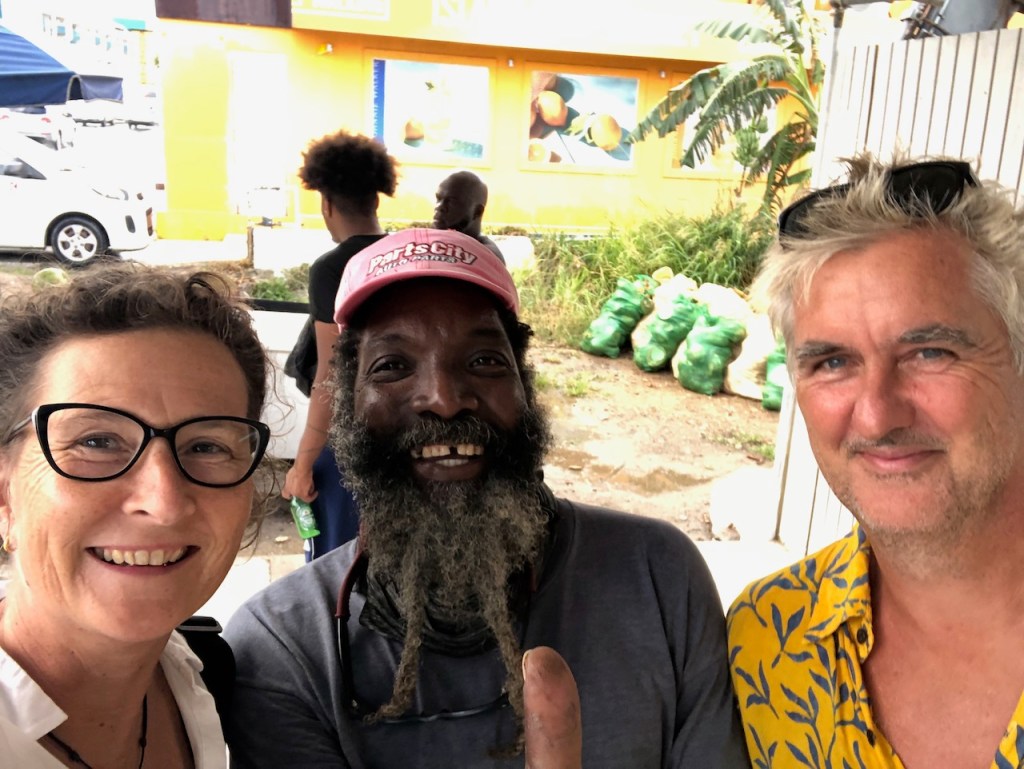 Well, as disappointing as it was not being able to catch up with my workout teacher Ann in Nevis as nice it was meeting Wilson. (The feature pic shows Wilson on the right and his Cousin) Ann set us up and we immediately got connected. How couldn’t we? Imagine sliding softly ashore the beach in your dinghy and a big black guy welcomes you with a huge smile and a perfectly belt out ” Griass Gott, wia geht’s?” (German with a deep Bavarian accent.) That was so incredibly funny! Our feet hadn’t touched the beach yet and we already felt at home.