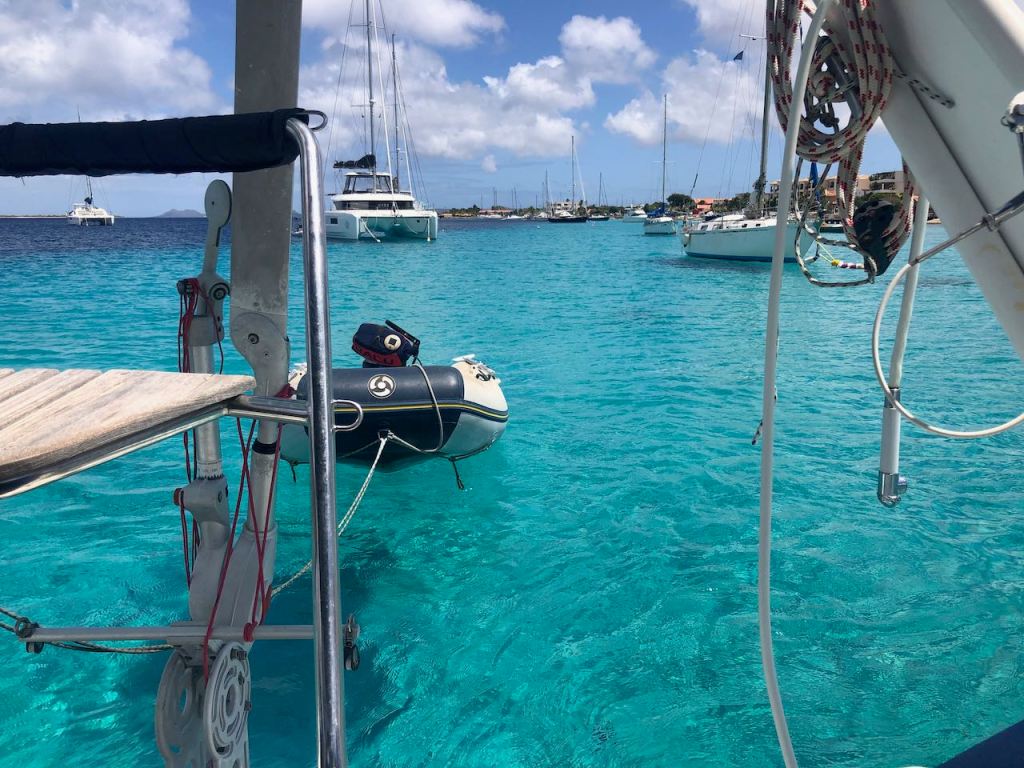 Maybe I should have started from where we left. The trip from Saint Martin to Bonaire was fortunately unspectacular. We left Marigot bay Saturday afternoon and arrived early Thursday morning (26th of May) at 4am at the marina entrance dock at Bonaire. A few days before we left St. Martin we had met a nice British couple, Fiona and Iain on Ruffian. They left to sail to Bonaire a few days before we left. That was lucky for us as we could take advantage of their information regarding free buoys in Bonaire. It was kind of a hassle to get a buoy (especially in hurricane times) as nobody is organising the assignment of the buoys. One need to ask who is leaving and if you’ve found somebody you needed to be lucky that you were the first to get the buoy. Anyhow, we were super lucky as Ruffian had organised for us a buoy from Friday. That meant, worst case we would have stayed one night at the marina. But as we were up so early and listening to a cruisers net we got the information that two boats had left so we got a buoy right away. Though this one was only free for a couple of days, it was perfect for us as we knew we had another buoy already waiting for us the next day.