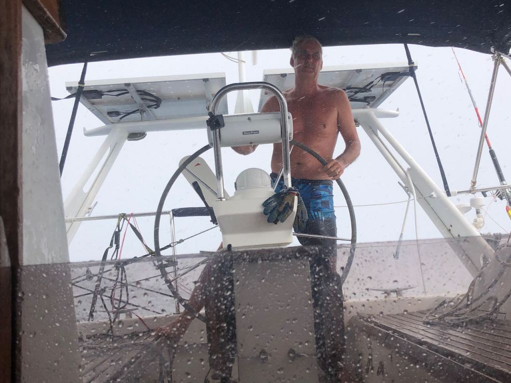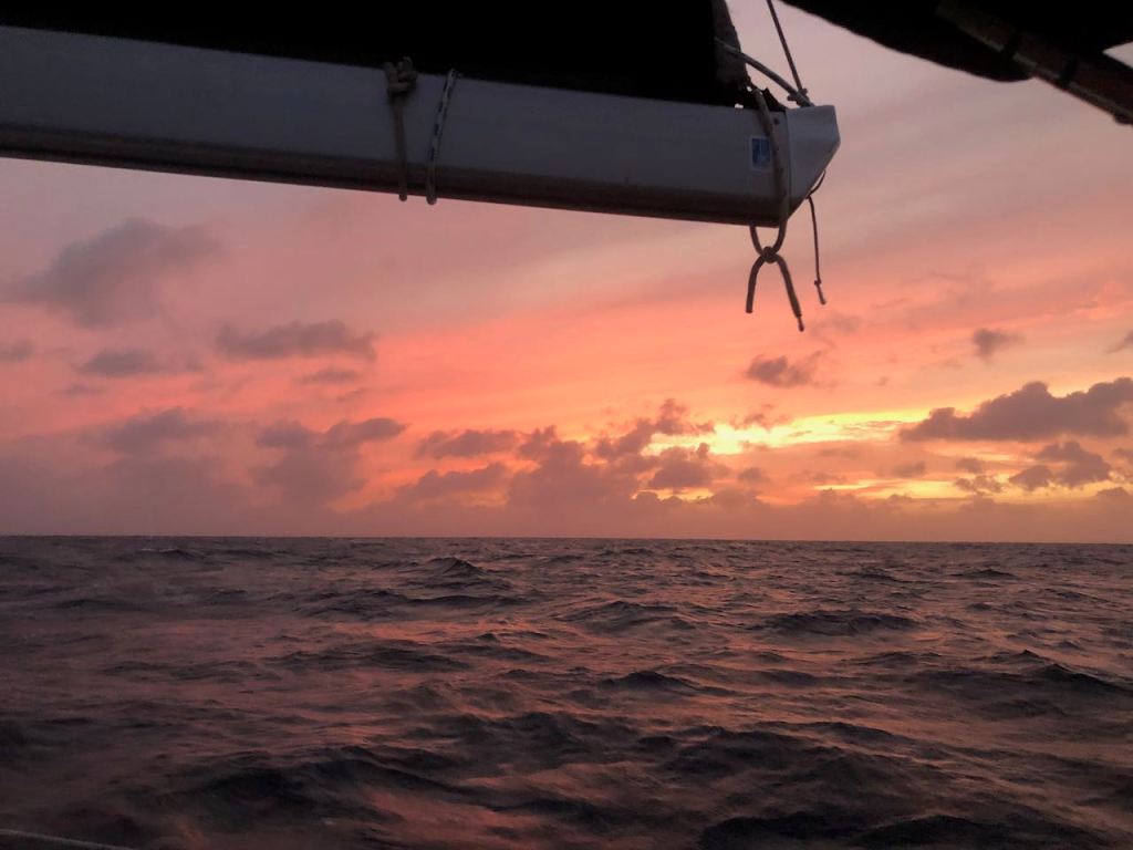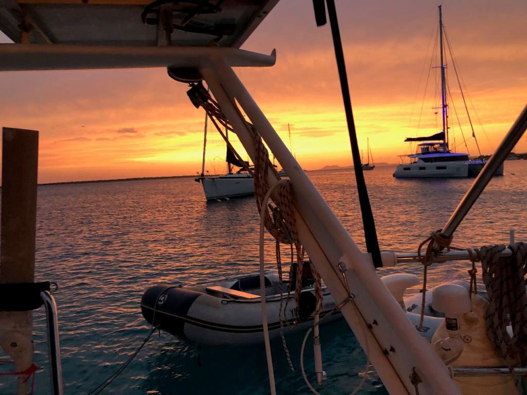 half time treatit was not always a pleasure ridethe last sunset before arriving at Bonairethe bay of Kralendijk at sunrise; we slowed down to arrive in daylightwe had to pump up the fenders to dock at the marina; unfortunately this action resulted in loosing a fender, well sh.. happens