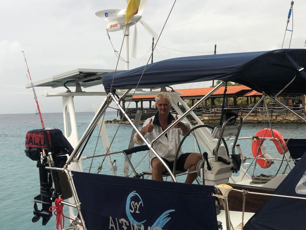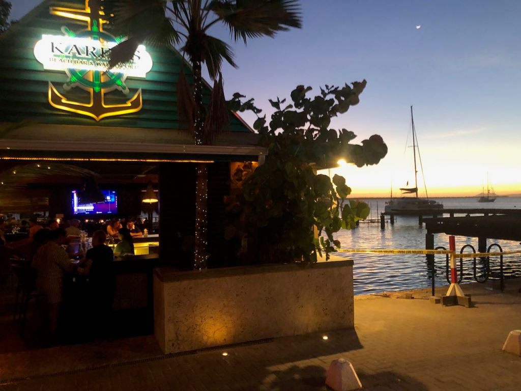 our first walk to town to check in; the marina staff gave us directions to find the customs office but forgot to tell us it was closed due to a bank holiday😂Altimate’s first anchorage; I liked the name of the boat on the rightour friends boat “Ruffian”ceiling art in Kralendijkpretty looking passagewe invited Fiona and Iain from Ruffian but I forgot to take a pic; instead another boring sunset at our second mooringwhile searching for a sipper slider we had the chance to get a feeling of Bonaire; it was flat and drythat was such a funny drive thru!!! I’m pretty sure that only exists in Bonaire; a drive thru to fill up dive tanksI just liked the muralthe marina the view from Altimate to shore; next to us Cathrine and Lars from “Tindra” a Swedish boat; behind them was Ruffiana cruising ship entered Kralendijk; that day the town was crowded; the ship only stayed for one daybest traffic sign everthe reason of the above traffic signon our way to the grocery store (that was always a very long walk) we found this small shop; a small Ikea outlet – and I thought we had already seen the smallest Ikea in La Palma…we sailors got so excited to watch a movie in a cinema; we were far too earlya bit later the open air cinema was slowly filling up; first row: Cathrine from Tindra, me and Fiona and Iain from Ruffian