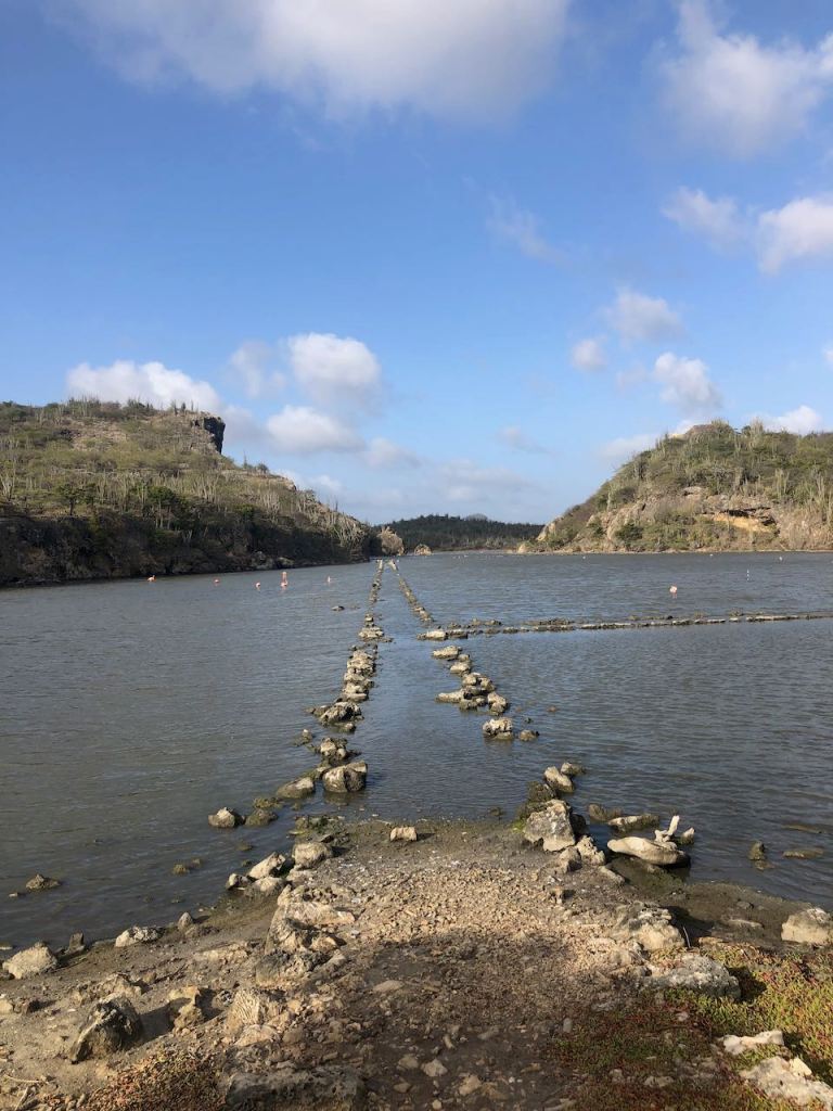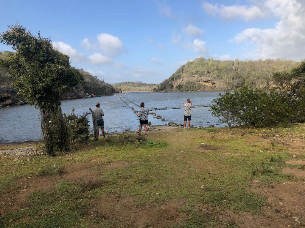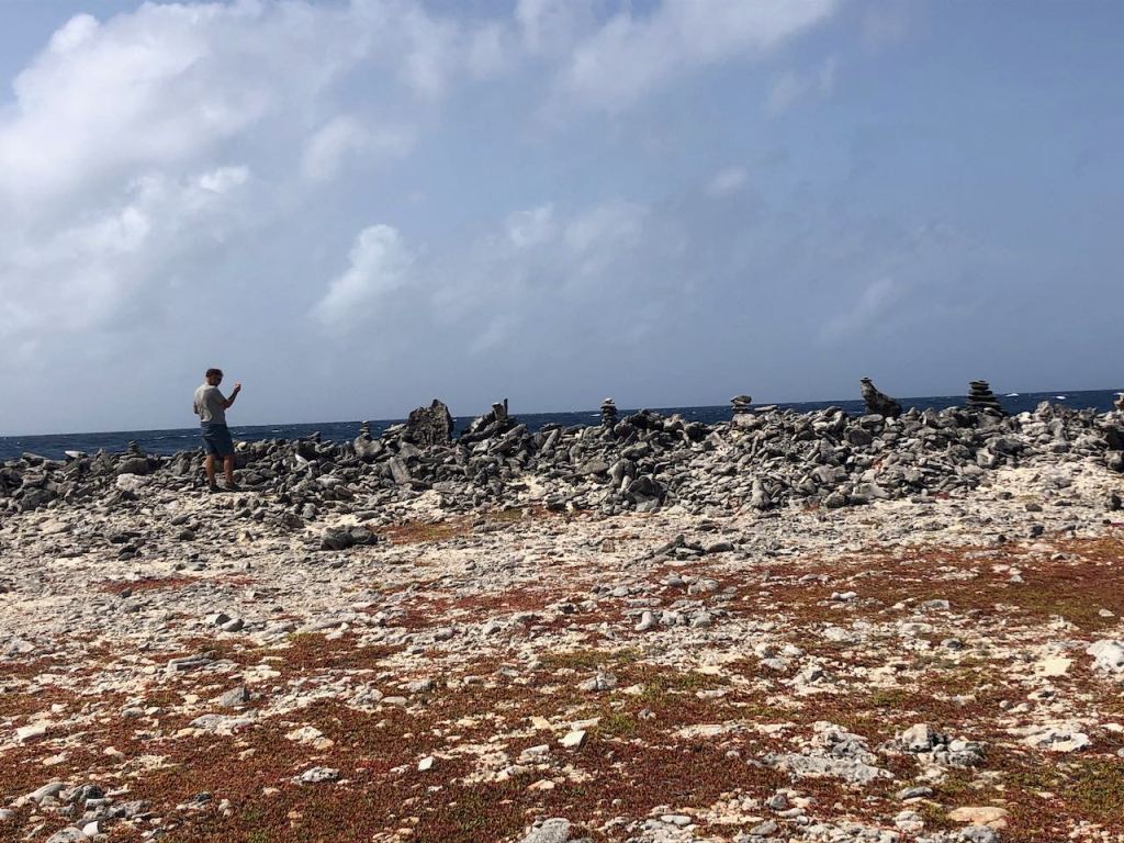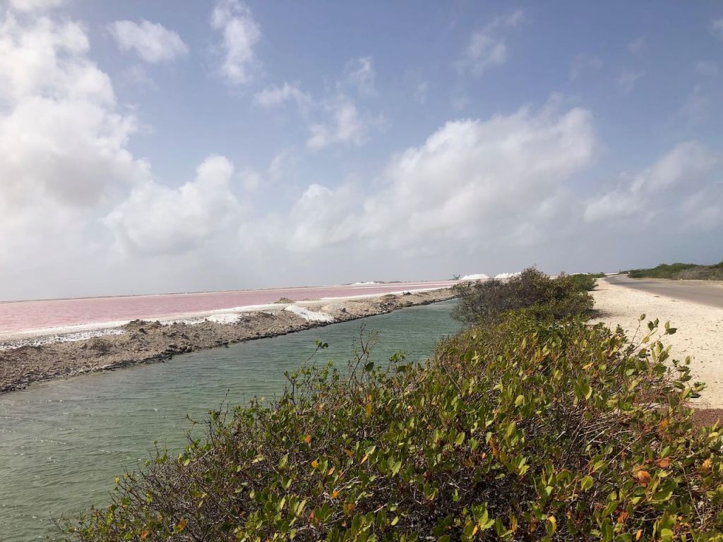 our first stop close to the solar salt works at the south end of BonaireI found these info in the www about the pink colour:”In these ponds we see the unique pink color which is caused by a microorganism called halophilic bacteria, which flourish in high salinity brine and in reality are not bacteria at all but a single cell life-form. The cell membranes contain carotenoid pigments which give the crystallizers the pink-red color.”that info sounds somehow nice, but it surly was terrible for the people to work at the salt worksslave hutssuper smallnot very comfimore slave huts I talked to some locals who were collecting this, they explained that they eat the pinkish looking small – what ever that is- raw; we were allowed to taste, it was very delicious a bit like oyster but firmthis is the yummi whatever; such a pity that we didn’t catch how they harvested thesethe slave huts from a different viewFiona watching the flamingoesIain taking pics of the stone menlittle stone manmany, many flamingoesthe lighthouse at the south tip of Bonaire Lac Bay in the south-east- it seemed like surfers paradisethe water was very shallow just perfect for water-sports like surfing or wing foiling exhausted, bored or fascinated? wild donkeyswet dirt roadsthe weather was crazy that day; here at a stop at the east coast right opposite of Kralendijka monument for a ship which sunk because it hit the reefthe power of watera very harsh environment but nevertheless very beautifula highlight in Bonaire- their longest tree