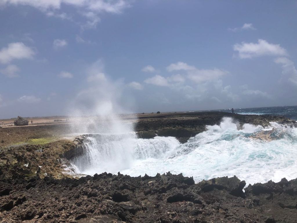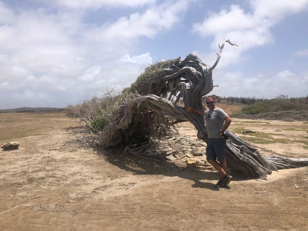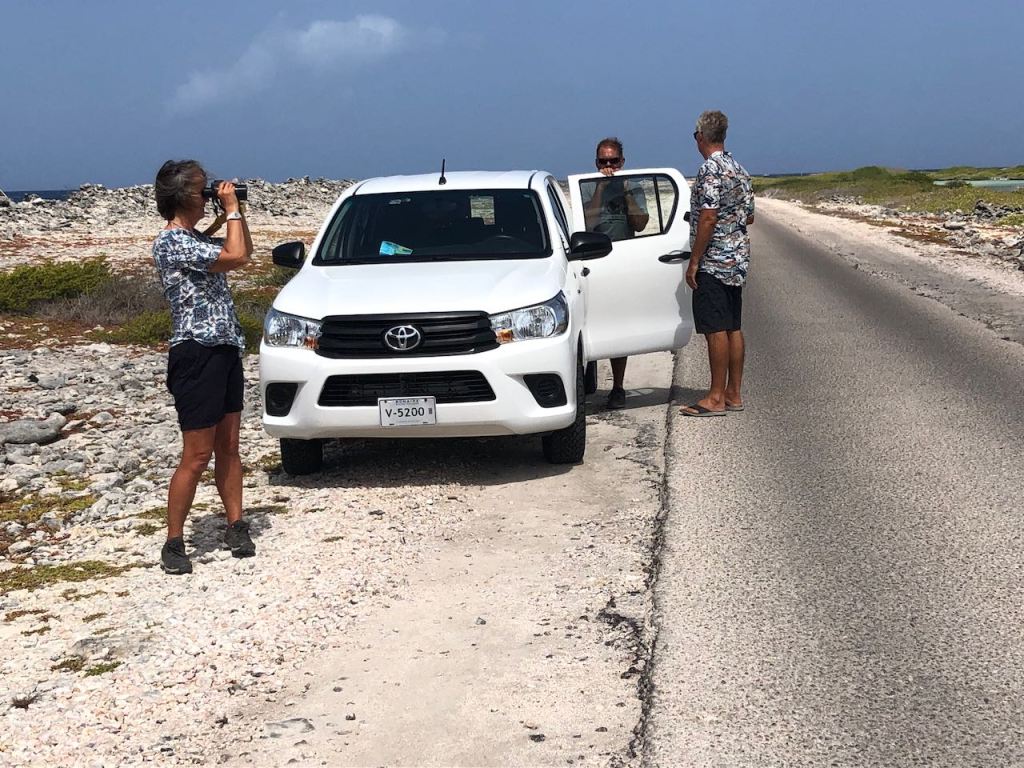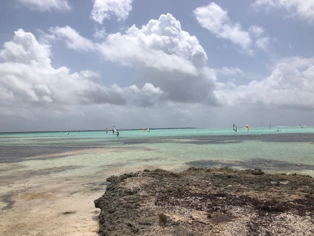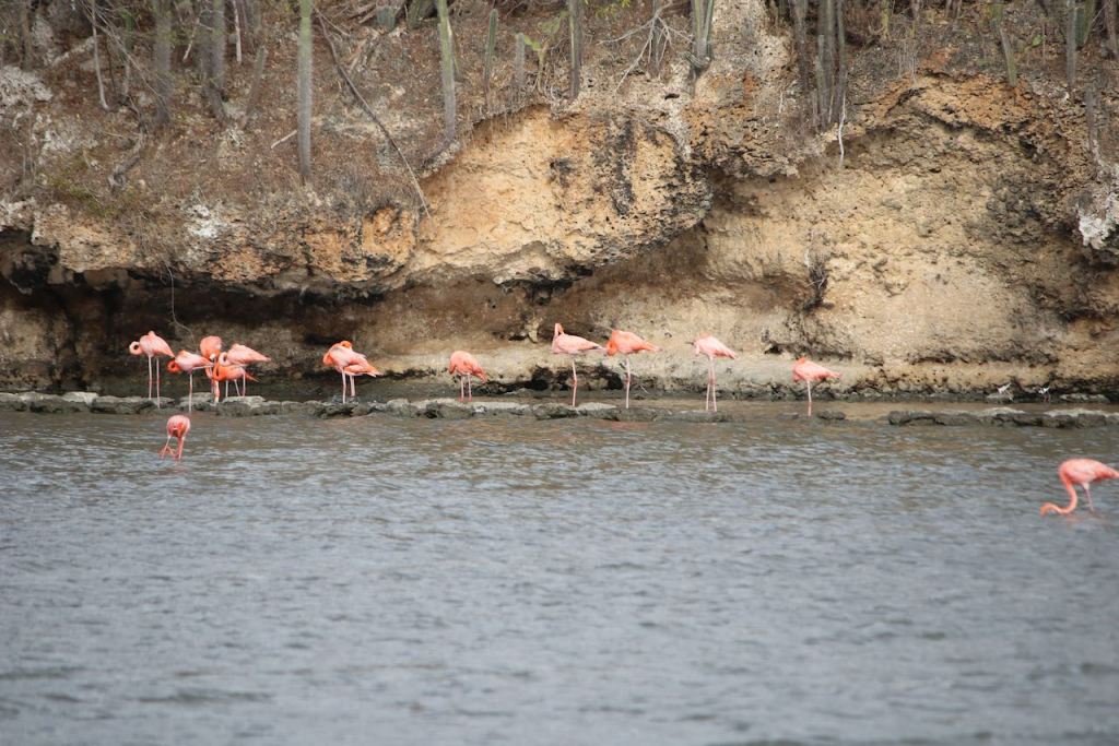 our first stop close to the solar salt works at the south end of BonaireI found these info in the www about the pink colour:”In these ponds we see the unique pink color which is caused by a microorganism called halophilic bacteria, which flourish in high salinity brine and in reality are not bacteria at all but a single cell life-form. The cell membranes contain carotenoid pigments which give the crystallizers the pink-red color.”that info sounds somehow nice, but it surly was terrible for the people to work at the salt worksslave hutssuper smallnot very comfimore slave huts I talked to some locals who were collecting this, they explained that they eat the pinkish looking small – what ever that is- raw; we were allowed to taste, it was very delicious a bit like oyster but firmthis is the yummi whatever; such a pity that we didn’t catch how they harvested thesethe slave huts from a different viewFiona watching the flamingoesIain taking pics of the stone menlittle stone manmany, many flamingoesthe lighthouse at the south tip of Bonaire Lac Bay in the south-east- it seemed like surfers paradisethe water was very shallow just perfect for water-sports like surfing or wing foiling exhausted, bored or fascinated? wild donkeyswet dirt roadsthe weather was crazy that day; here at a stop at the east coast right opposite of Kralendijka monument for a ship which sunk because it hit the reefthe power of watera very harsh environment but nevertheless very beautifula highlight in Bonaire- their longest tree
