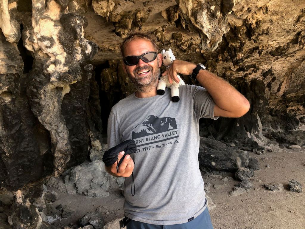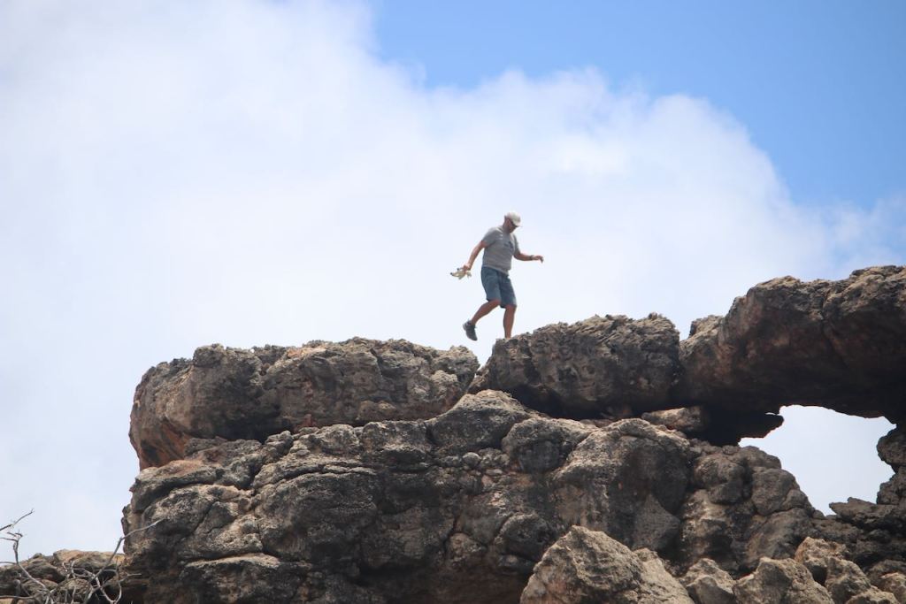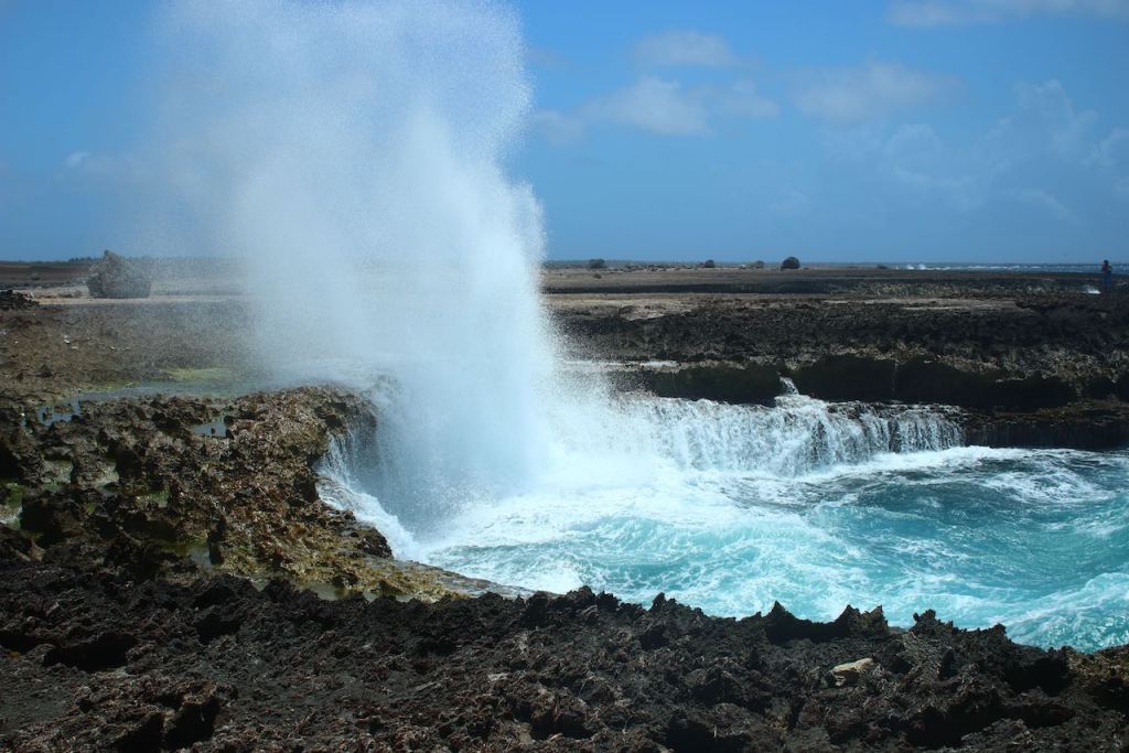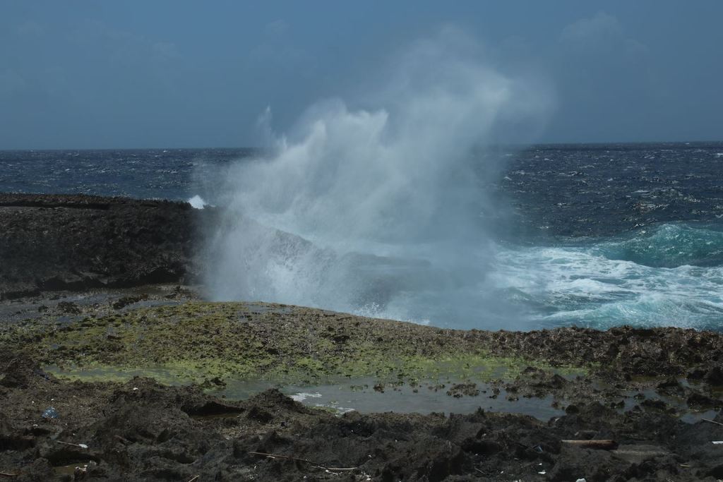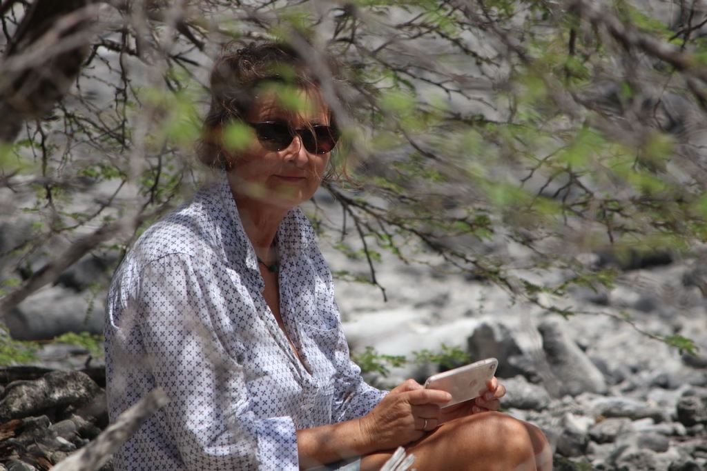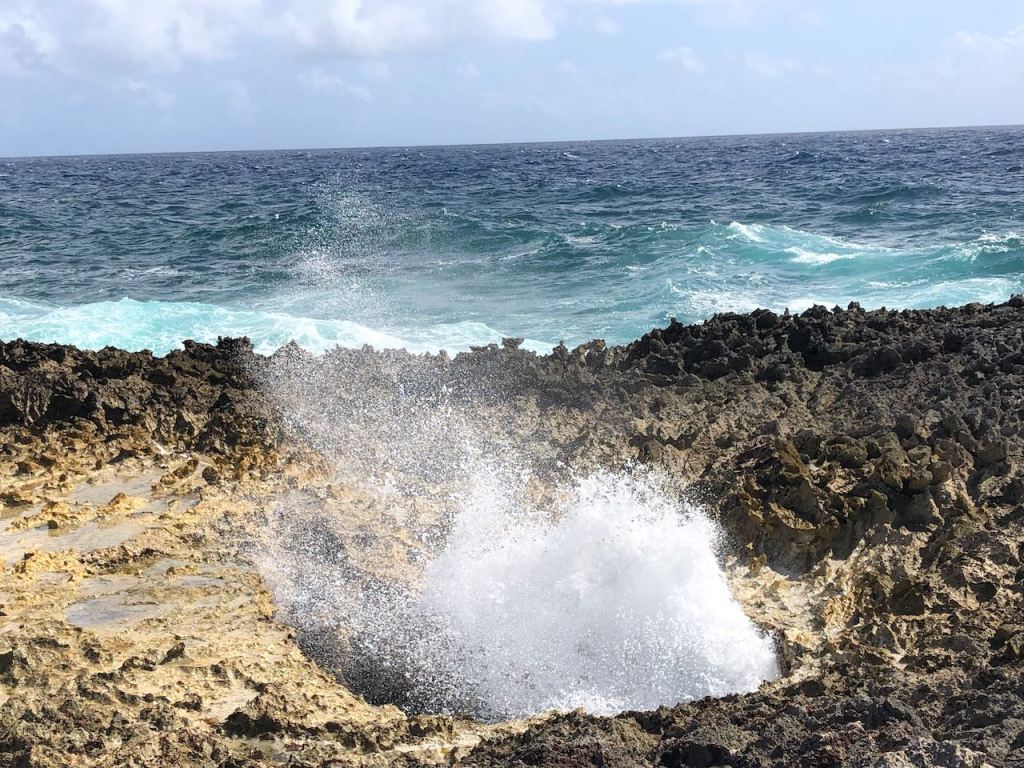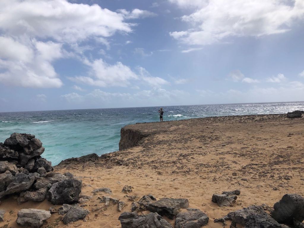 a stop at another blowholeIain still had too much energy he was desperate to climb up the hill to the natural bridgewe saw many, many wildlife that dayvegetarian iguanaa ruin in the desertwest side of the national park, the area was much calmerchilling at the pebbled beach beautifulrelaxing in the shadeselfie in the car, slowly heading back we had a quick stop herea nice place to go diving or snorkelling inside the National Parkcacti leading the way Salina Slagbaaiour last stop