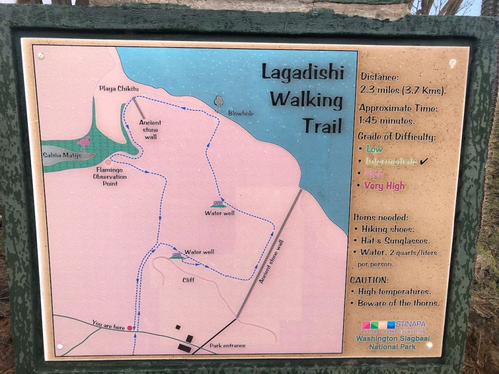 The Washington Slagbaai National Park is located in the northern end of Bonaire. It comprises of two former land plantations, Washington & Slagbaai, totalling just under 14,000 acres. These two plantations once supplied salt, charcoal, aloe extract, divi-divi pods (divi-divi is a large shrub or tree with thorny leaves), and goats for export to Curaçao and Europe. The Washington Plantation was secured in 1969, upon the death of the owner “Boy” Herrera. He negotiated with the government to take over the plantation upon his death with the condition that it was to remain undeveloped for the enjoyment of the people. Early on our second day we drove to the national park. As we were early enough we could walk the Lagadishi Walking Trail.