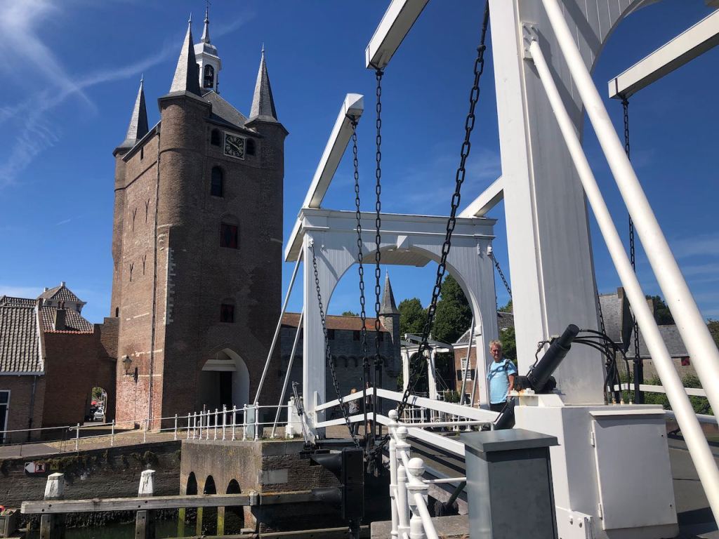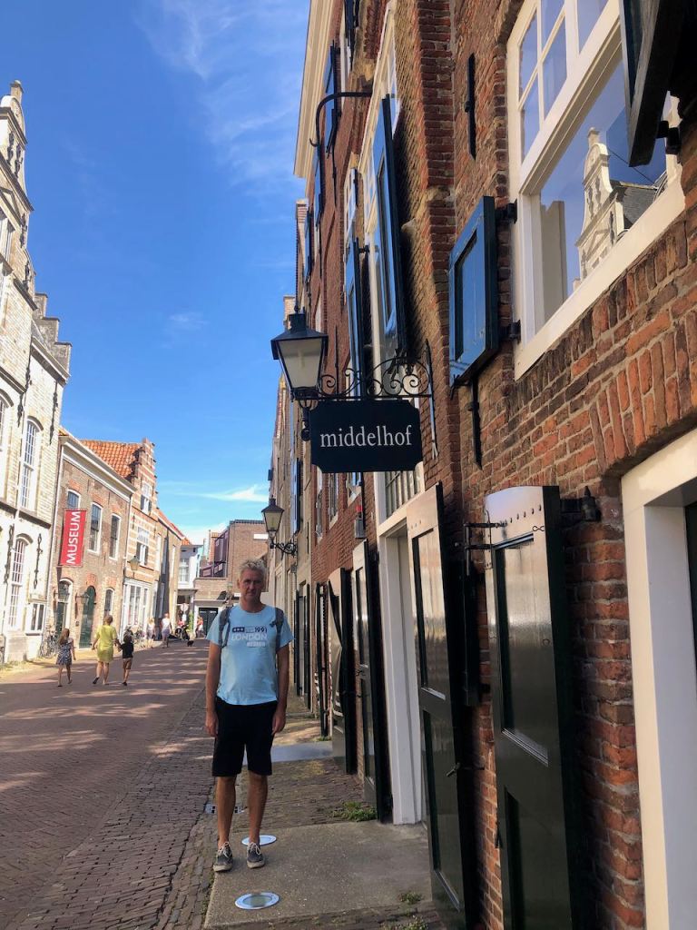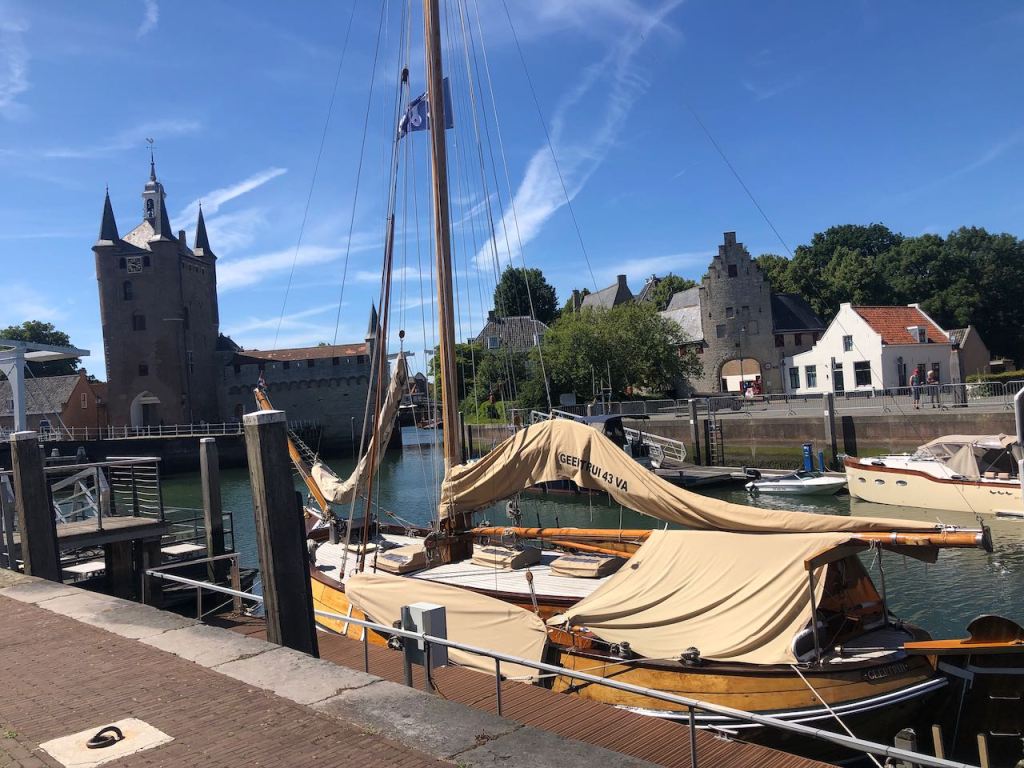 a typical Dutch opening bridge and the old city gate of Zierikzeea typical wooden Dutch boat with side slidersmore beautiful Dutch boats“Havenpark” in the middle of the towna modern band having a jam session with classic instrumentsjust some pretty cloudsI just loved the logopaedic mouth opening helpswho is crooked? El Capitano or the houses?Job Baster (1711-1775) I did not get what made him specialsome pretty flower decorationsthe smallest door we’ve seen so farmore crooked houses