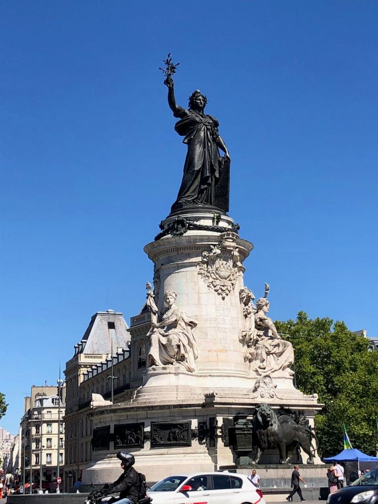 Paris in August is emptystrange art made out of paper omg so yummi cheese, what a pity we couldn’t take it all with uswe were in a fancy supermarket where you could buy everythinga typical french buildinga pretty display window from Hèrmes, the prices were ridicules, e.g. the gloves cost euro 1100,-or this water fountain euro 25000,- 🤣, who buys this ? and who needs it?just somewhere a nice statueNotre Dame in refitPont de la Tournelleother side of the bridge and looking in direction Ile dé la Cite“Jardin de Rosiers” at the quartier “Marais”still in Maraisand here we found Benoit at an advertisement; it so looks like himenjoying Jana’s and Benoits small balconyit was so much nicer there in summerdad and daughter having a serious conversation?somewhere on a Sunday walkcanal St. Martin with several locksPlace de la Républiqueour last evening , it was hard to find a nice restaurant in Augustour last breakfast…airport Charle de Gaulle has a nice waiting area