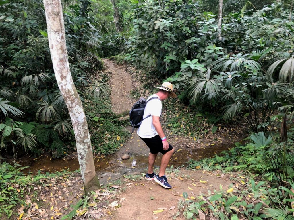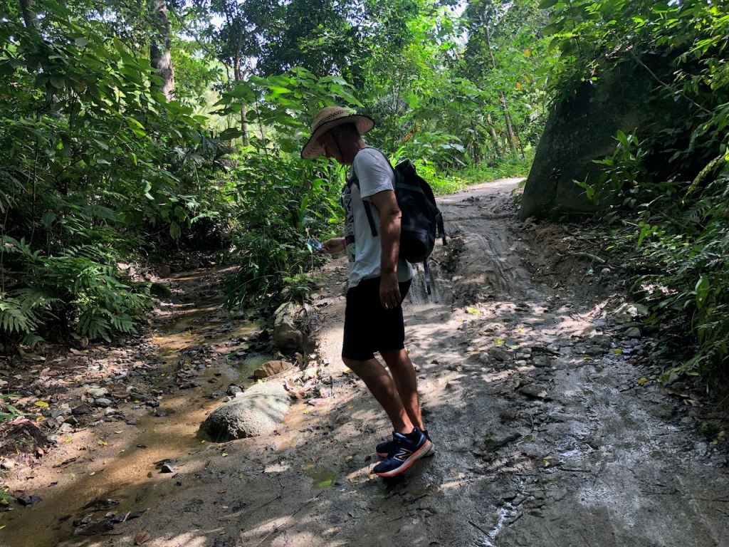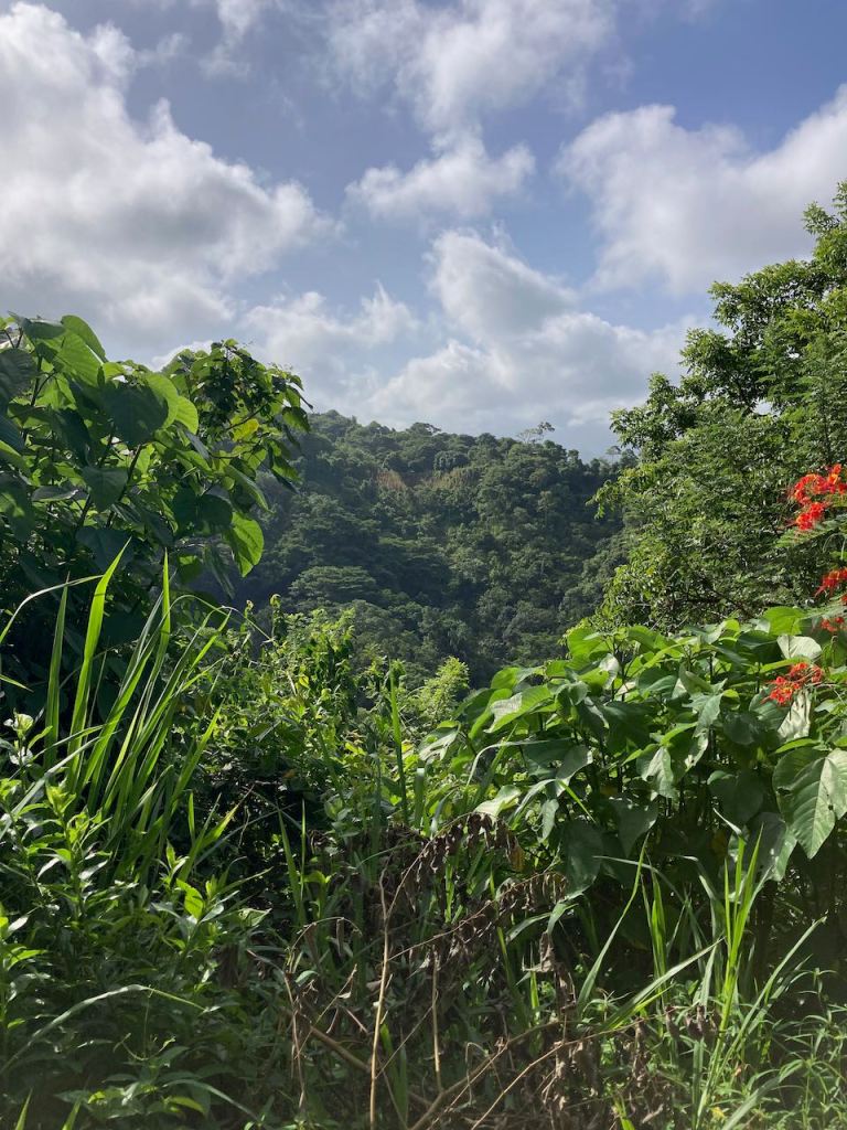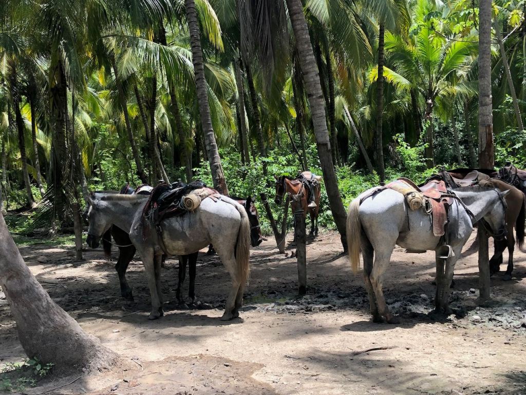 a pic out of the bus on our way to the parka lot of police presenceone of the few nice pis we could getnot yet quite up the topwe made it to the top and had a short coffee braekthey had so many different kind of poultrysome art from the locals or indigenous- I don’t really know this chick was almost tamehere the little pond where the ducks felt happythe only house we could actually see properlyanother roof lurking through the woodsEl Capitano checking the routeI found some colour and those agile fellows very unbelievably busy and carrying huge leaves for miles, just amazingwe have not seen them – fortunatelythe “dry” rainforestdoes this tree still need to grow into its skin?first time we could see the waterEl Capitano getting to the first beachthis beach was empty as it was not allowed and much too dangerous to swim because of a strong currentI couldn’t find the names of the beachesaround the corner we had our simple lunchanother beachsome of the accommodations available in the parkI was glad that we didn’t decide to stay a night at the parksome of the horses which kept overtaking us; if I had known I would have gotten one…getting closer to the horse trailagain ants walking for milesit does not look very muddy, but I can tell you it was!we made it! just when we arrived thise two horses were finding their way on their own