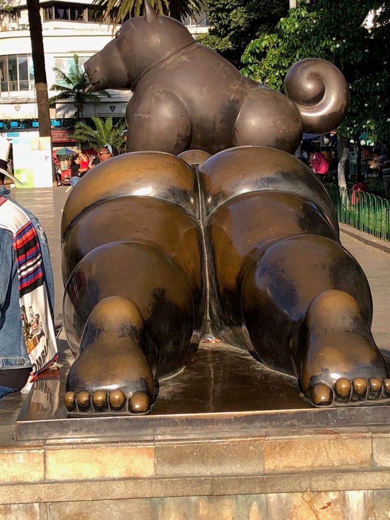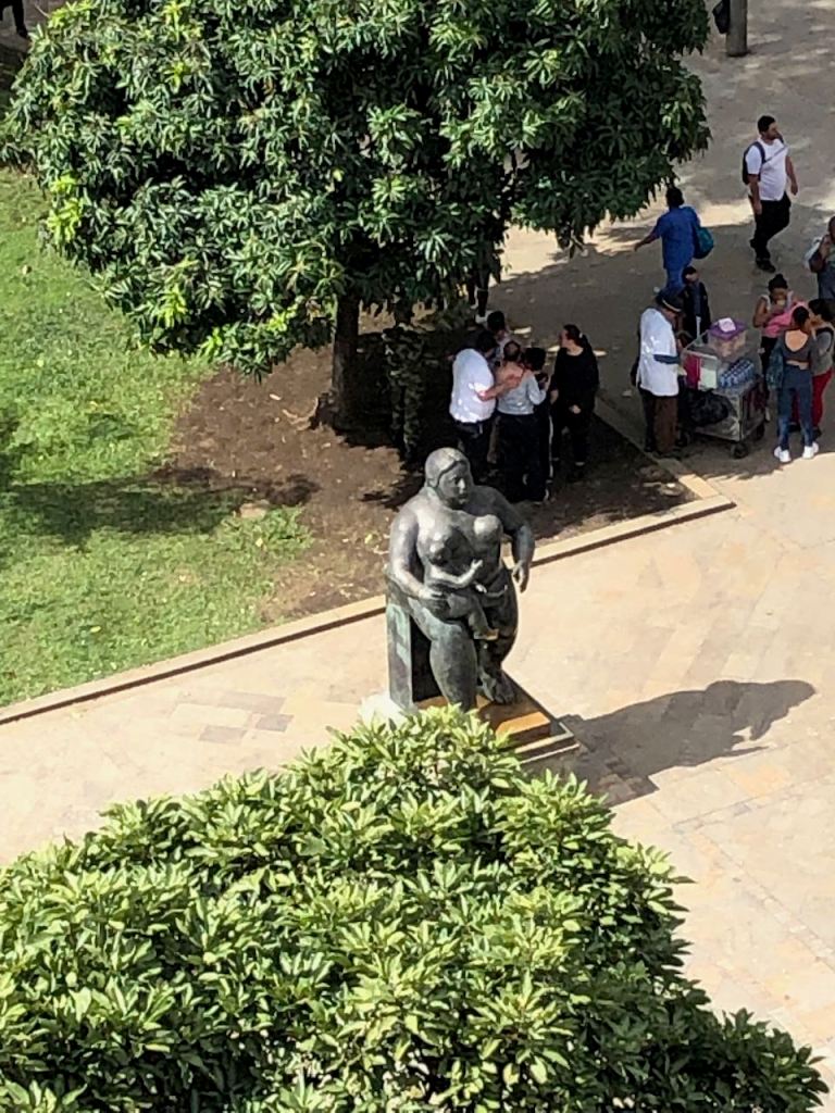 Plaza De Botero was a must see with its many sculptures and buzzling surroundings and was conveniently located in the heart of the city. Actually it was an outside museum with 23 sculptures of Maestro Fernando Botero. The renowned Colombian artist donated these bronze sculptures to the city of Medellin. Very impressive! I tried to find words to describe these sculptures. Here is what came into my mind: full-figured, big-boned, chubby, voluptuous. Any more ideas?