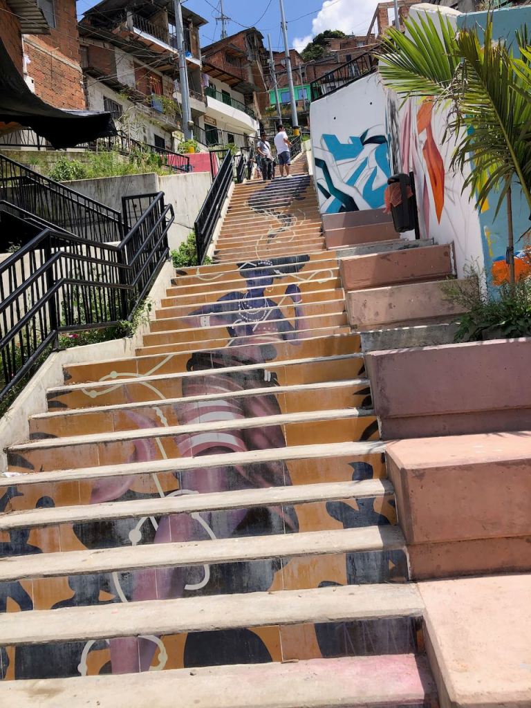 The city itself poured money into Comuna 13 in hopes of revitalising the former war zone. An additional metro-cable line was added from San Javier station to provide access to the northern hillsides surrounding the area. A few years later, modern, open-air escalators were built to help locals reach the city centre without climbing hundreds of stairs upon their return.