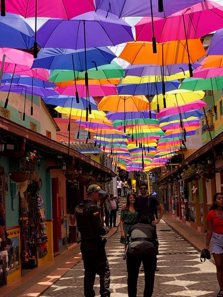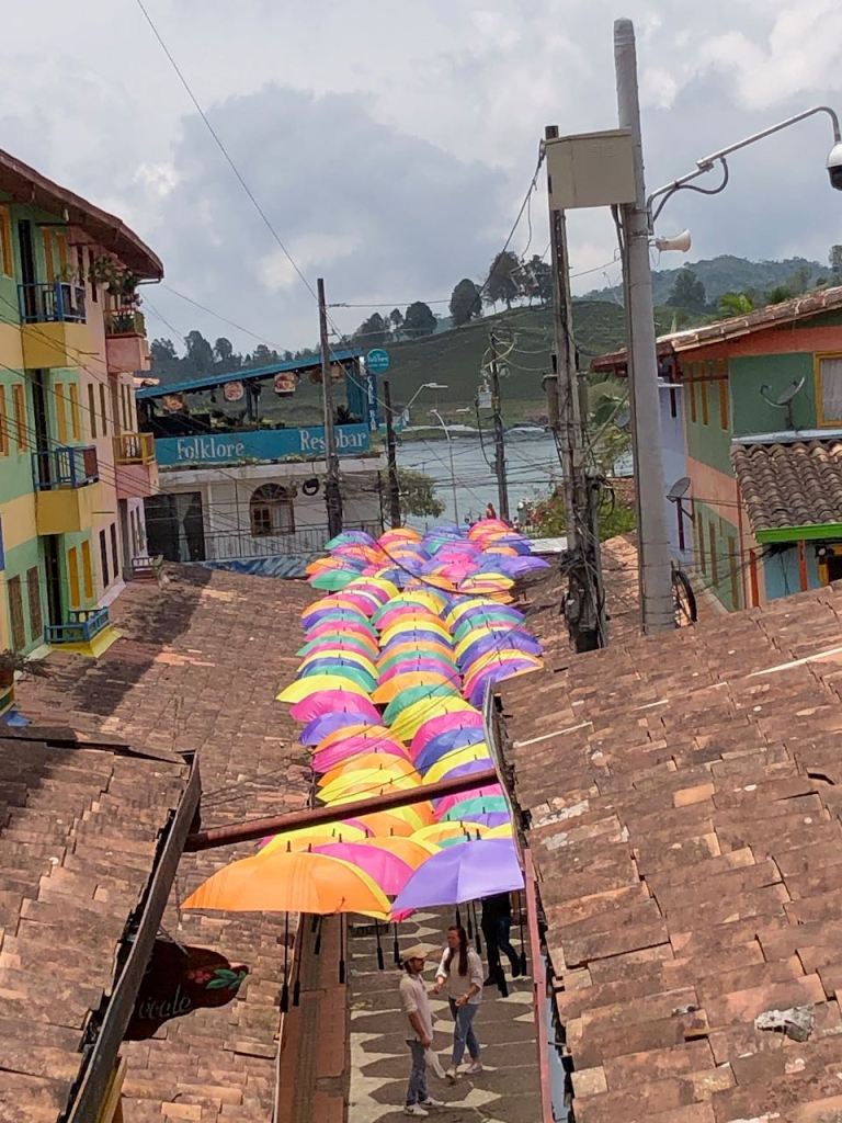 Being exhausted from all the walking and exploring of the big city the last days, we booked a day trip to Guatapé. A pretty little village about two hours drive east of Medellín. Guatapé was known for its colourful streets and pleasant squares with many restaurants and shops. That was true and nice. We liked being proper tourists and not having to think about what to visit next. Everything was organised, even the food, a river tour and the visit to the rock “El Peñon”. We had our time schedule and were not allowed to be late! If not – punishment! No problem for us – being German😁. I really enjoyed that tour apart from going up 700 stairs at El Peñon. Yeah, the view was nice but I wasn’t sure if it was worth the effort…