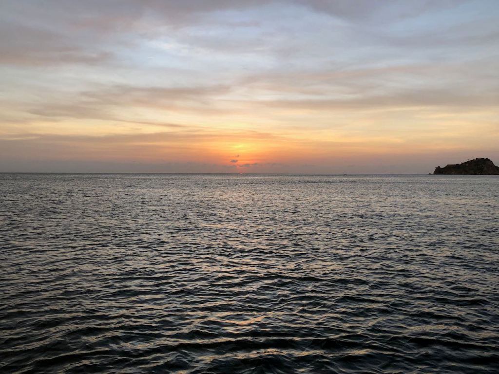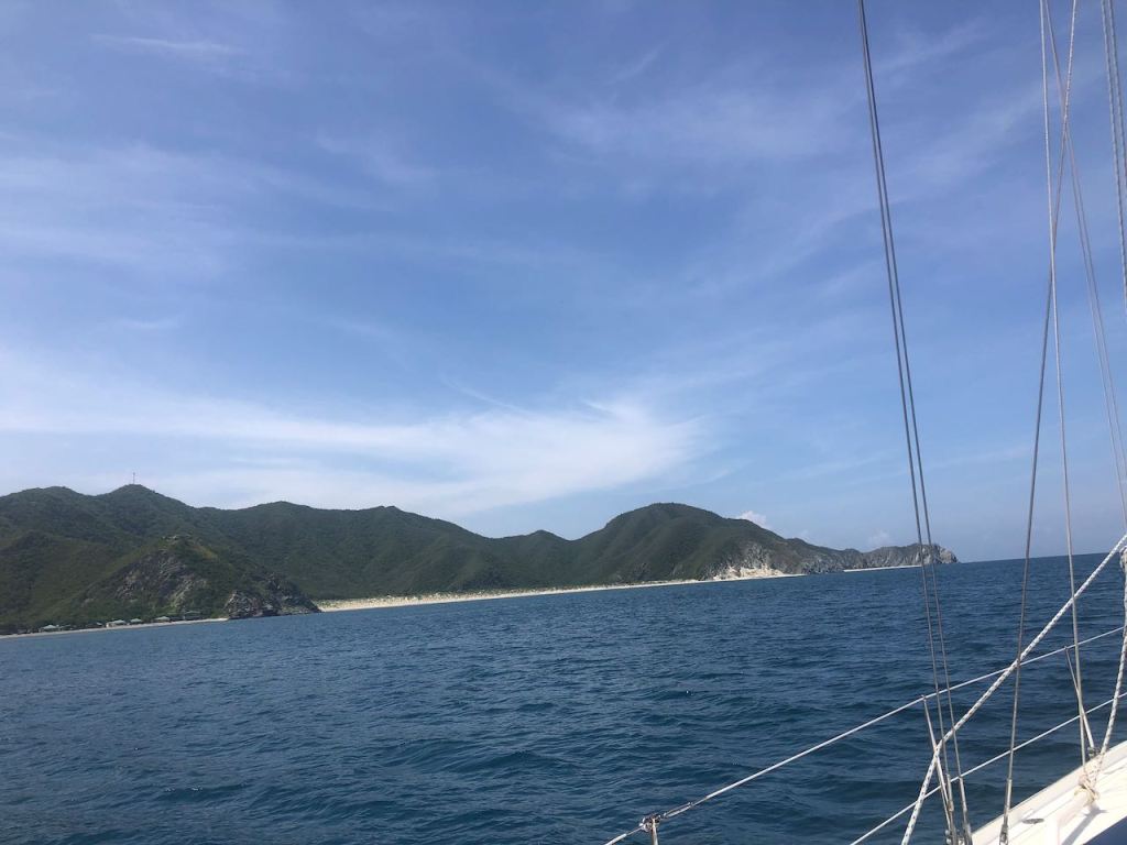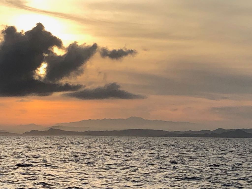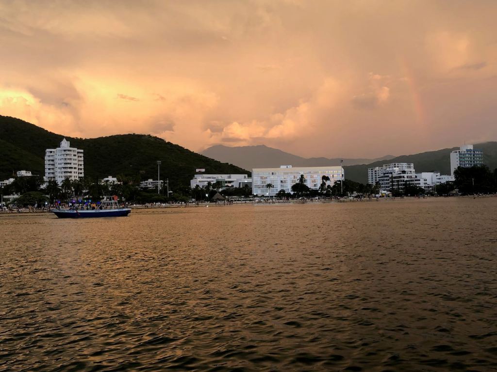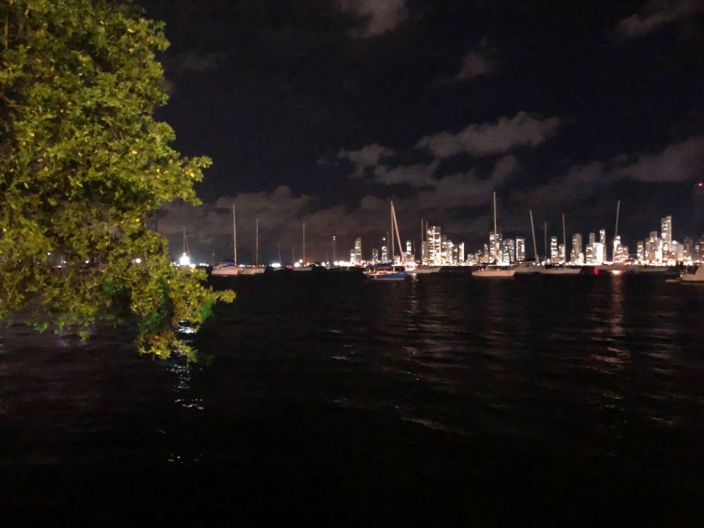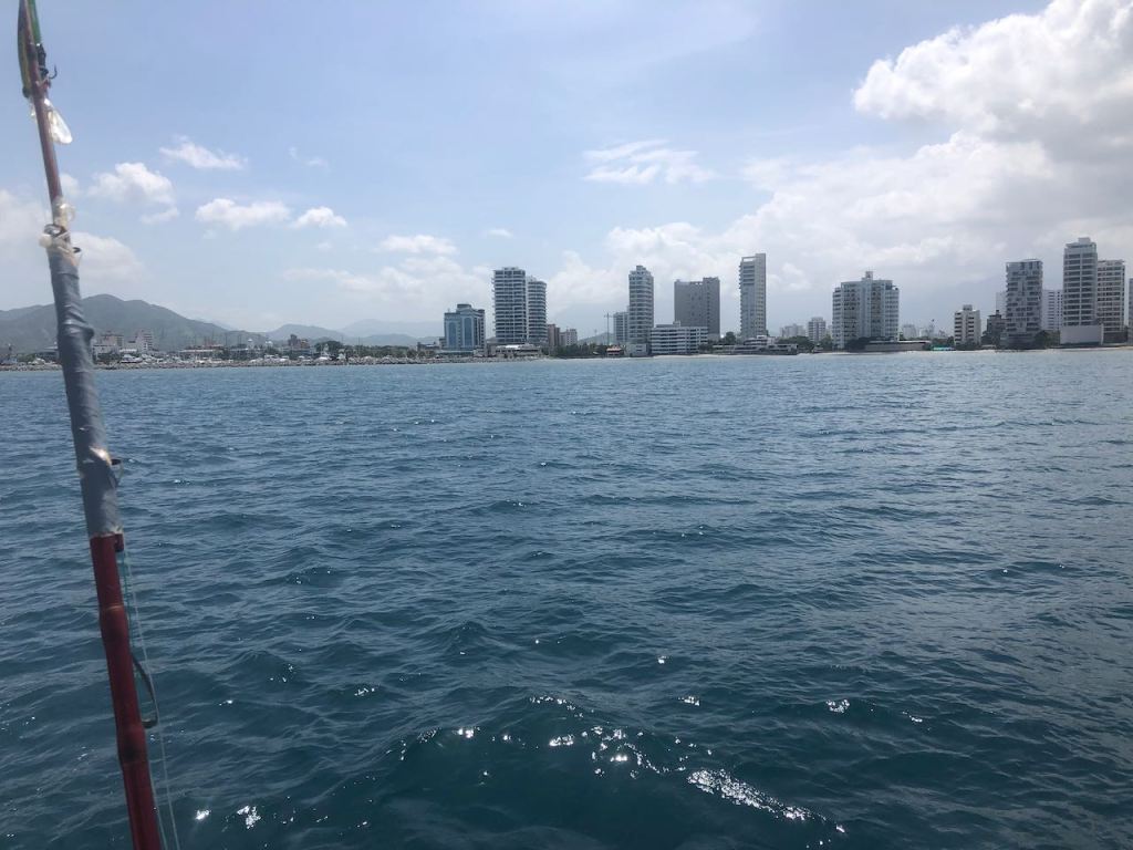 leaving the bay and the skyline of Santa Marta playa Lipo a little south of Santa Martaour first anchorage just a couple of miles around the corner, Playa El Rodadero, this place was a very touristic place, lots of Colombian tourists come hereand many boats came buy to take a picture of us🤣, not many sailing boats stop therethose guys even asked if they could take photosand a first sunset back at anchorRodadero at night