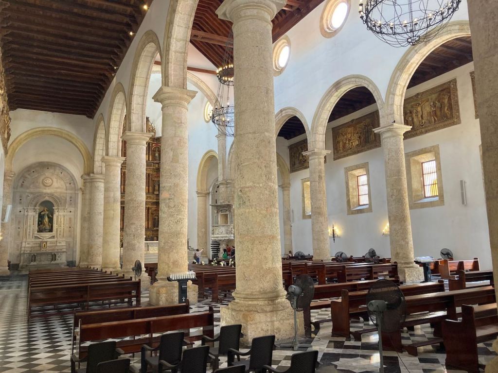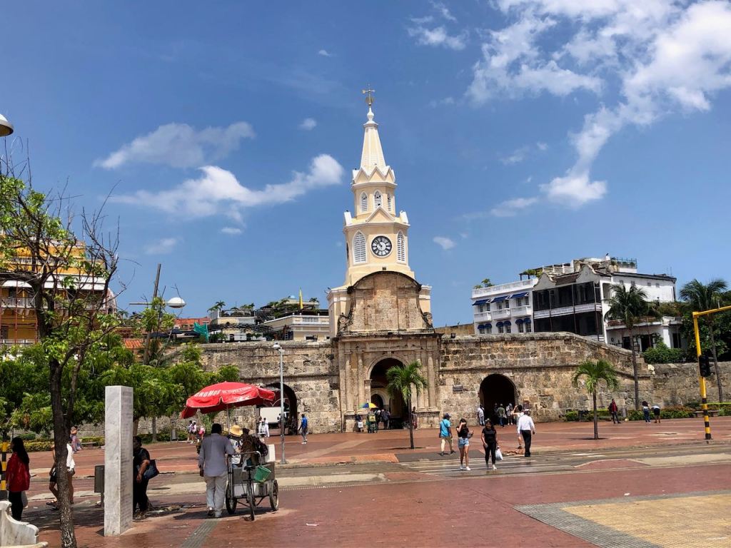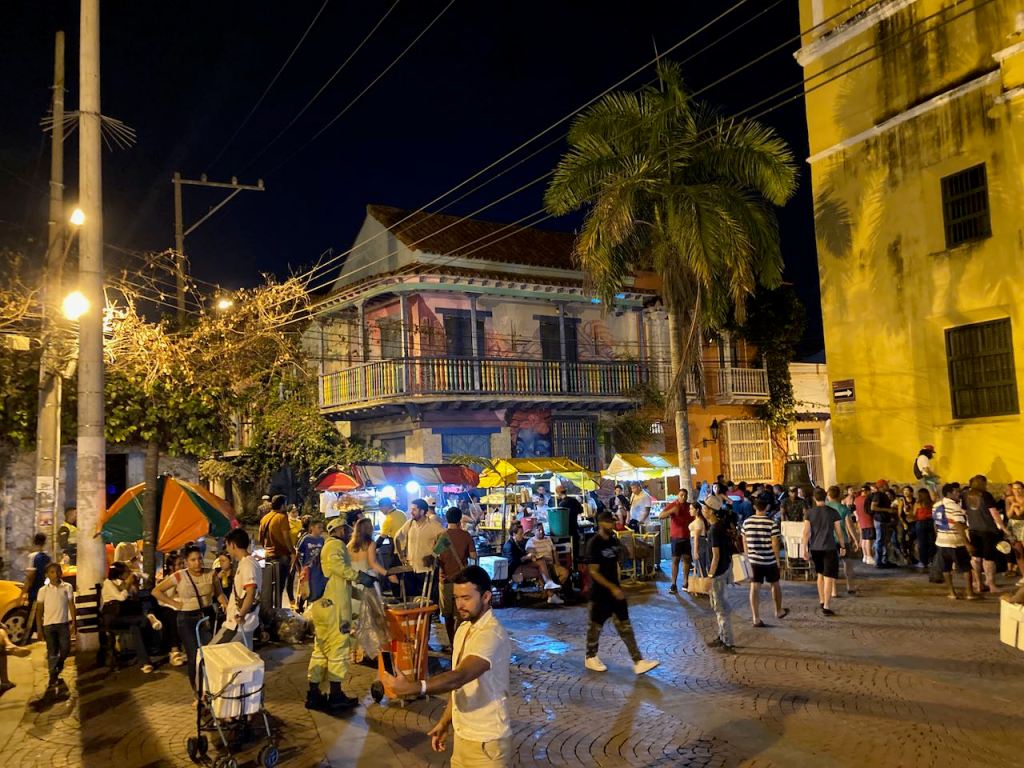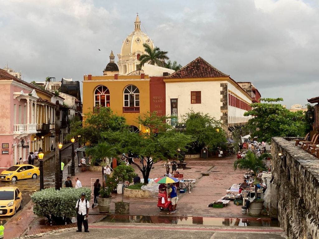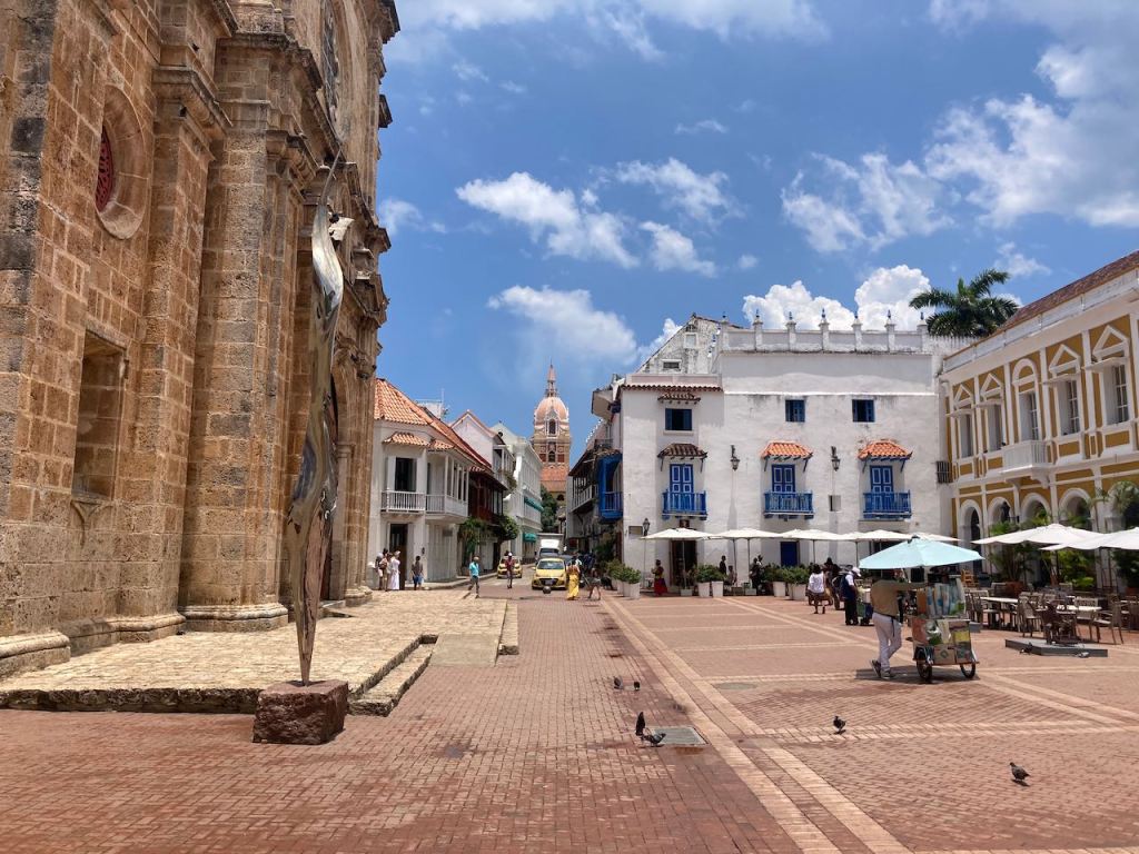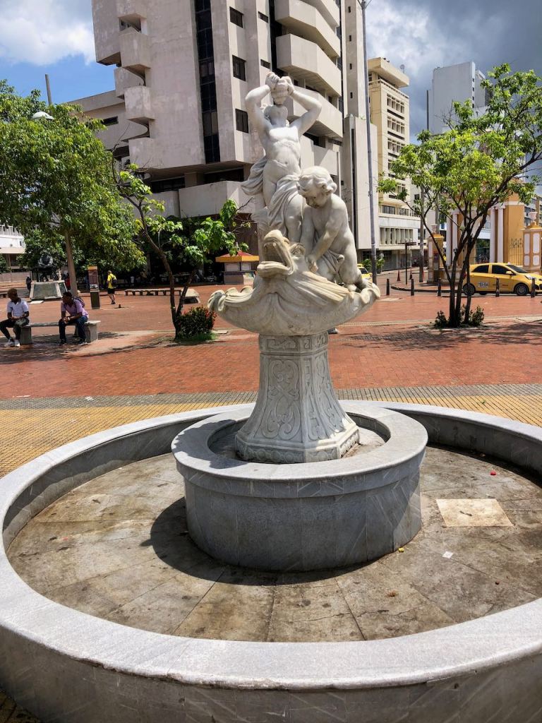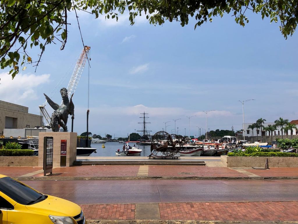 Plaza de la Trinidada typical street vendor, sausages were on his menuerrrrrrrrrrrrrrrrra fiesta at Parque Lácides Segovia in Manga, here with some of the Occ members after meeting up at Club de PescaMuelle de los PegasosPuerta de Reloja fountain next to El Centernario Plazaside entrance of the cathedral Santa Catalina de Alejandriaa typical street in the historical centrePlaza de Bolivarsomebody famous at Plaza Bolivarhaving a coffee at a cafe using their wifi like in Santa Marta the locals often use simple hand trucks for transportationpretty balconiesearly morning workout at the fort of San Sebastian del Pastelillo just next to thye marinanot a bad view to do your workoutPlaza de San Pedro Clavermuseum de San Pedro de Claver Plaza de la Aduanahe was visiting us each day at our platformPlaza de Santa Teresa at the south east end of the wall the view from the anchorage of Cartagena direction old cityhigh tide and the streets and parking lots were flooded each timea night out with the crew of Ruffian, Iain and Fiona